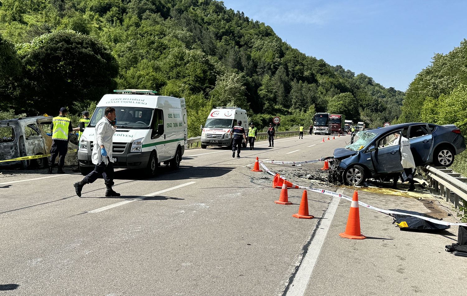 Araçtaki yangın, itfaiye ekiplerince söndürüldü. Kazada, hafif ticari aracın sürücüsü E.Ç'nin yanı sıra aynı araçta bulunan Gerze Devlet Hastanesi'nde görevli doktorlar Sena Sakin ve Mehmet Turan Yazlar ile otomobilde bulunan R.T. olay yerinde hayatını kaybetti.