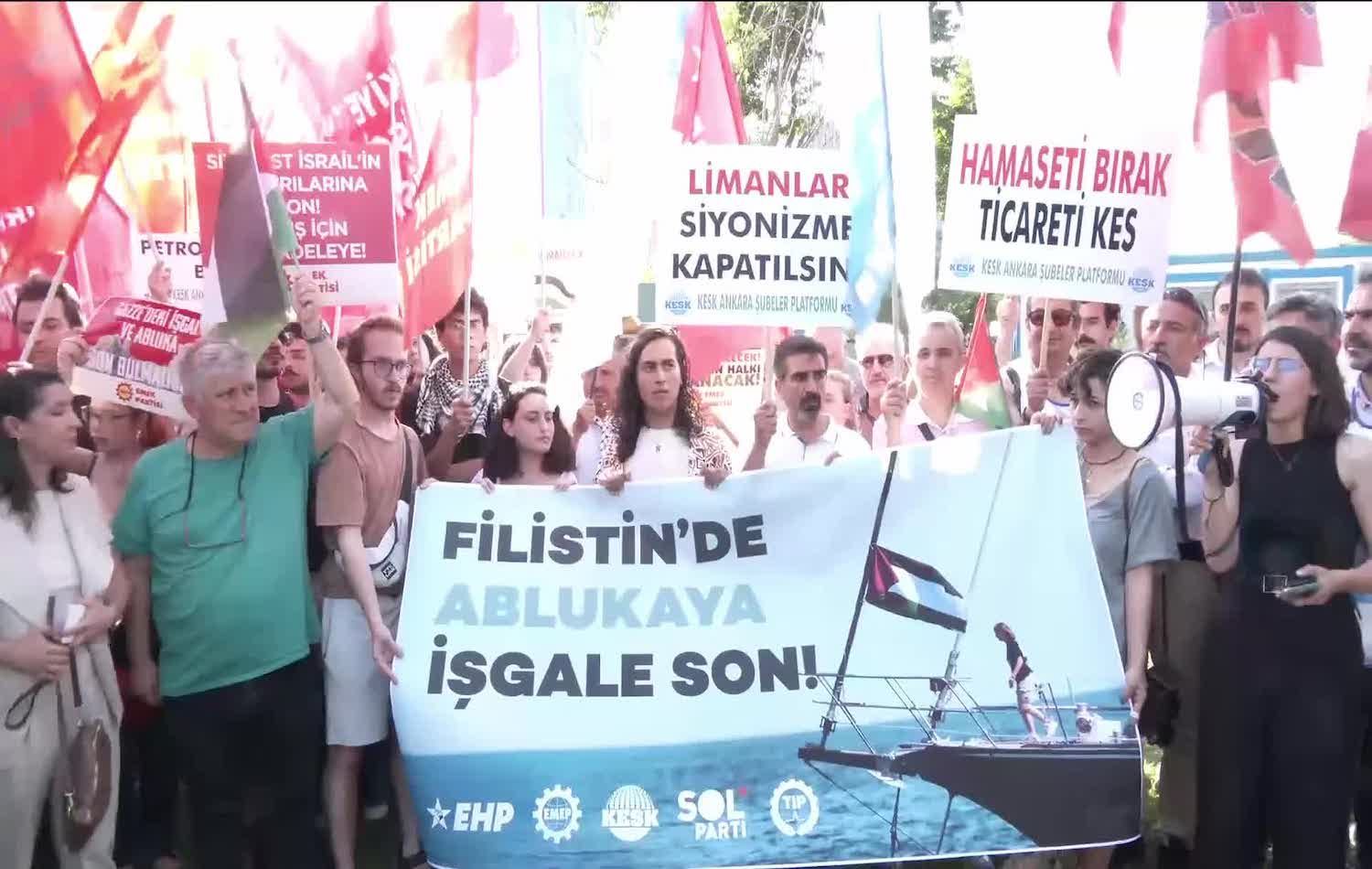 Haber Merkezi - Ankara'da sol partiler ve sendikalar, İsrail'e silah taşıyan geminin Mersin Limanı'ndan geçmesini protesto etti.