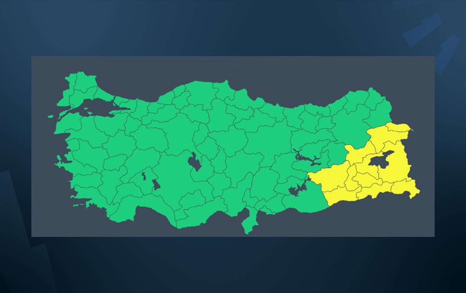 Ağrı, Batman, Bitlis, Diyarbakır, Hakkari, Iğdır, Mardin, Muş, Siirt, Şırnak ve Van sarı kodla uyarılan iller oldu.