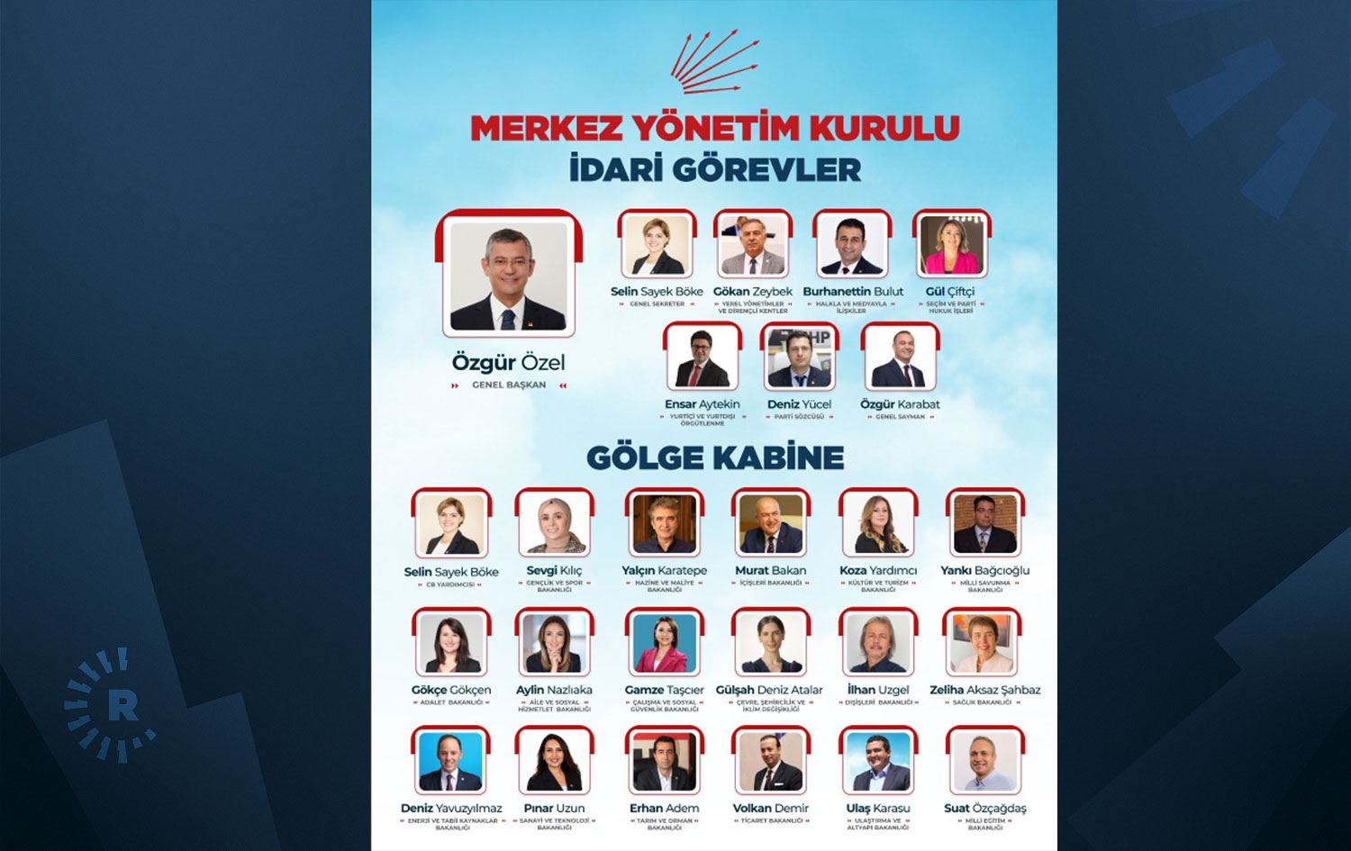 CHP Genel Başkanı Özgür Özel, MYK üyelerini açıkladı ve bu kadroyu "gölge kabine" olarak tanıttı. Partide her kesimi kucaklayan bir yapı oluşturduğunu belirten Özel, Kılıçdaroğlu'nun daha önceki ekibinden üç ismi MYK'ya dahil etti.