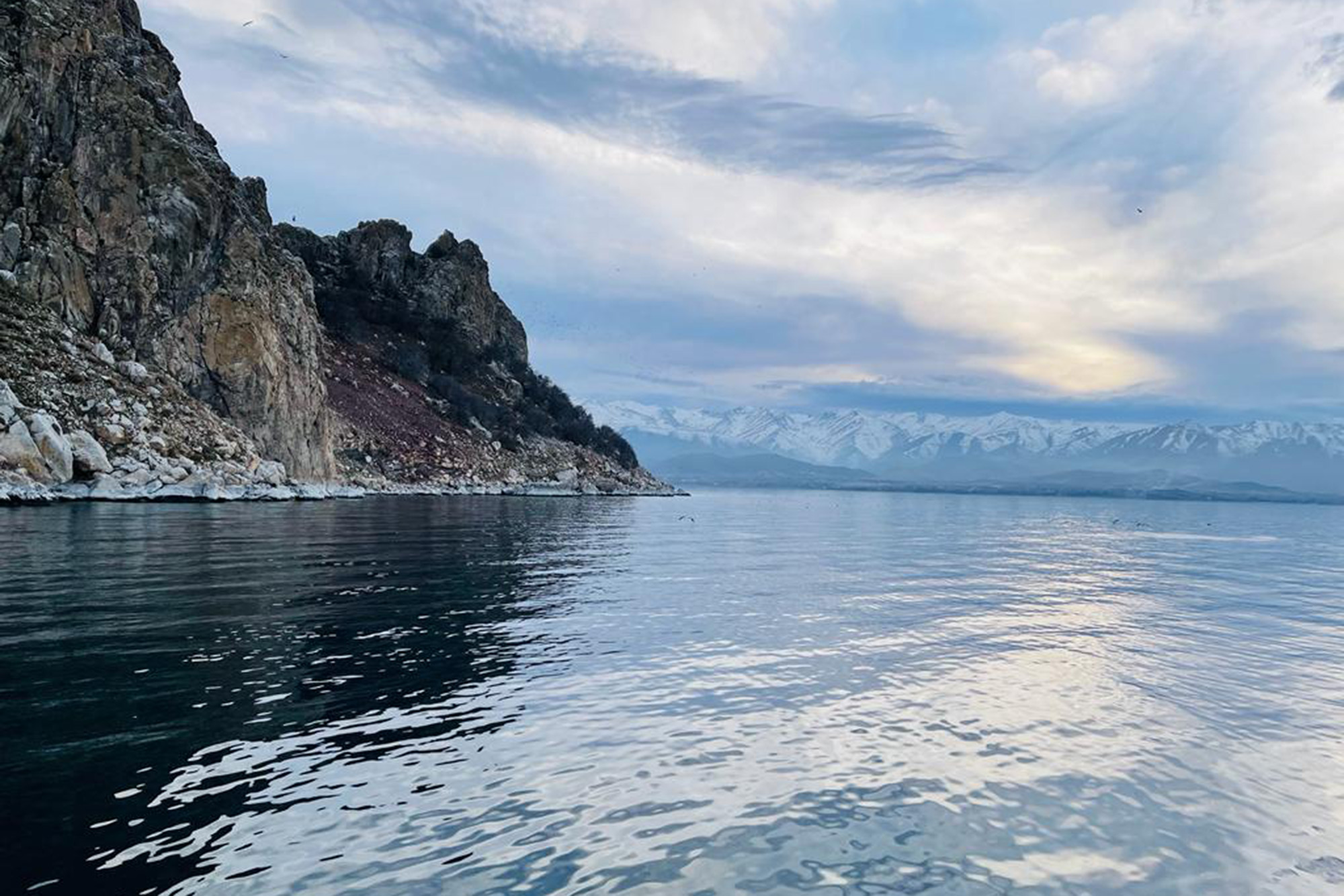Van (Rûdaw) - Doğal güzelliğiyle de bilinen Van Gölü'nde kışın da gelmesiyle sahil ve tarihi yapıların da seyrine doyumsuz görüntüler oluştu.