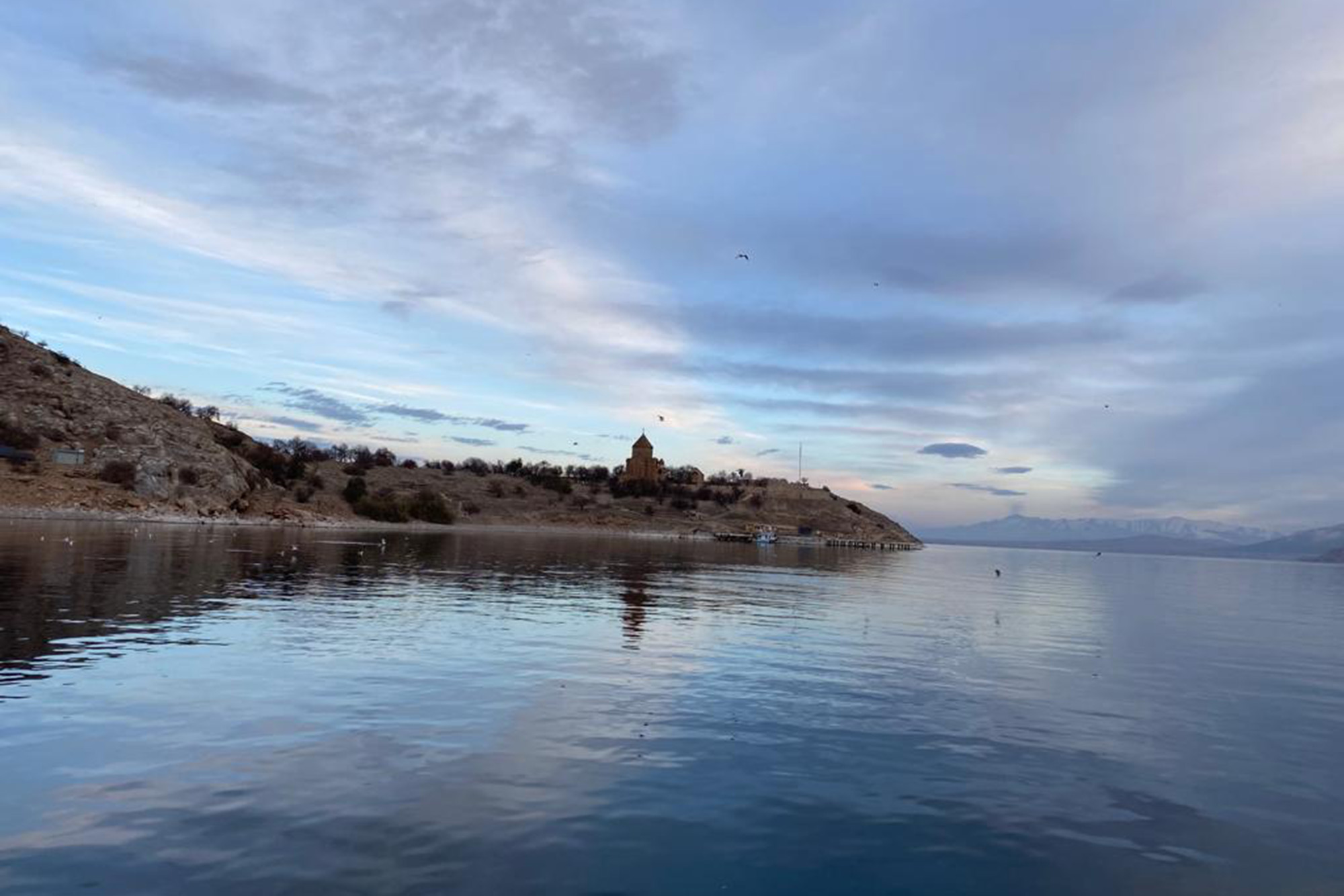 Van Gölü’nde bulunan ve kentin en önemli turizm değerleri arasında gösterilen Akdamar Adası, kış mevsimiyle birlikte masalsı bir güzelliğe büründü.