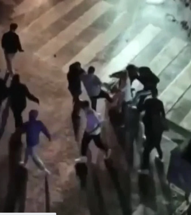 DHA’nın aktardığına göre olayı gören çevredeki gençler, karısına tokat atan kişiye tekme tokat saldırırken, bir kişi de yerden aldığı kaldırım taşını attı.