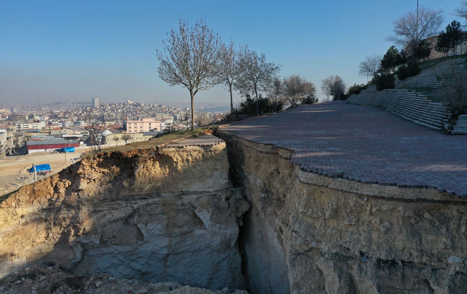 Maraş'ta meydana gelen 7,7 ve 7,6 büyüklüğündeki depremlerden etkilenen illerden biri olan Antep'te depremin ardından Şahinbey ilçesindeki Şenyurt Mahallesinde bulunan Aydınbaba Parkı'nda dev bir yarık oluştu.