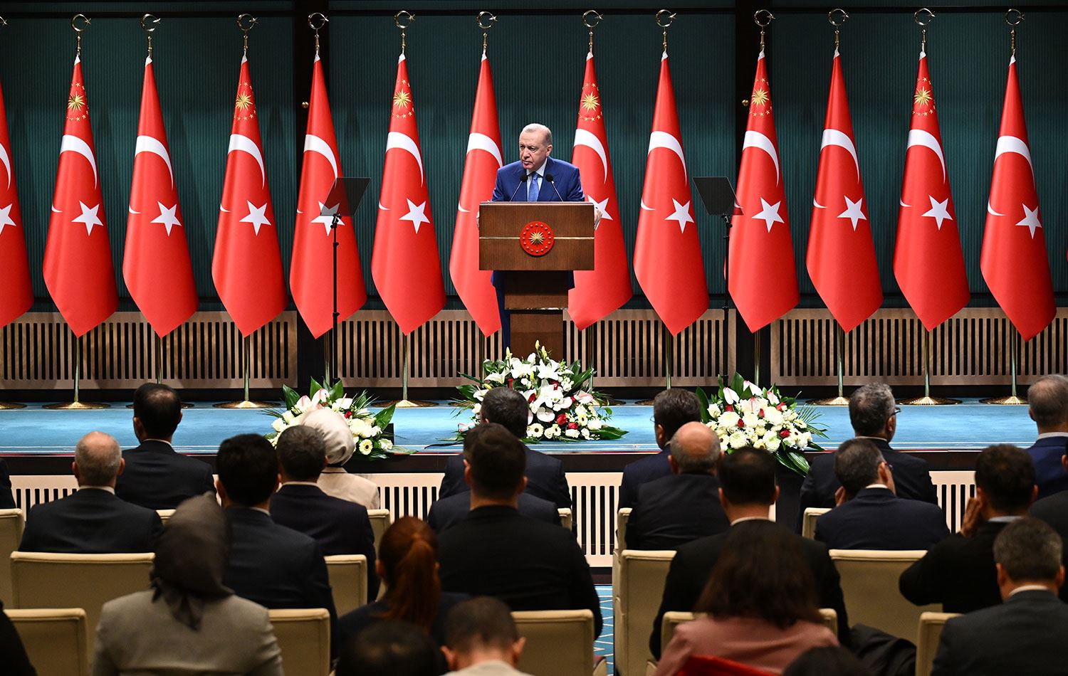 Erdoğan başkanlığında gerçekleştirilen kabine toplantısı sonrası düzenlenen basın açıklamasından kare. / Foto: AA