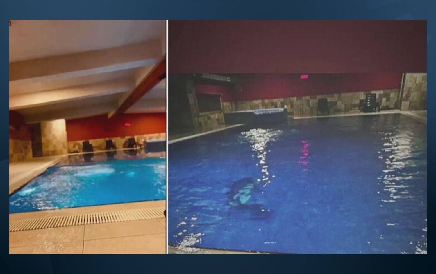 Kolonlarının kesildiği ileri sürülen alt kattaki spor salonuna ait olan havuzun görüntüleri ortaya çıktı.
