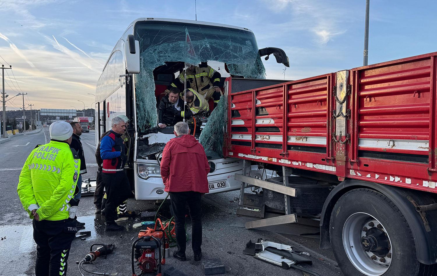 Haber Merkezi - Kütahya'da yolcu otobüsünün tıra arkadan çarpması sonucu ilk belirlemelere göre 14 kişi yaralandı.