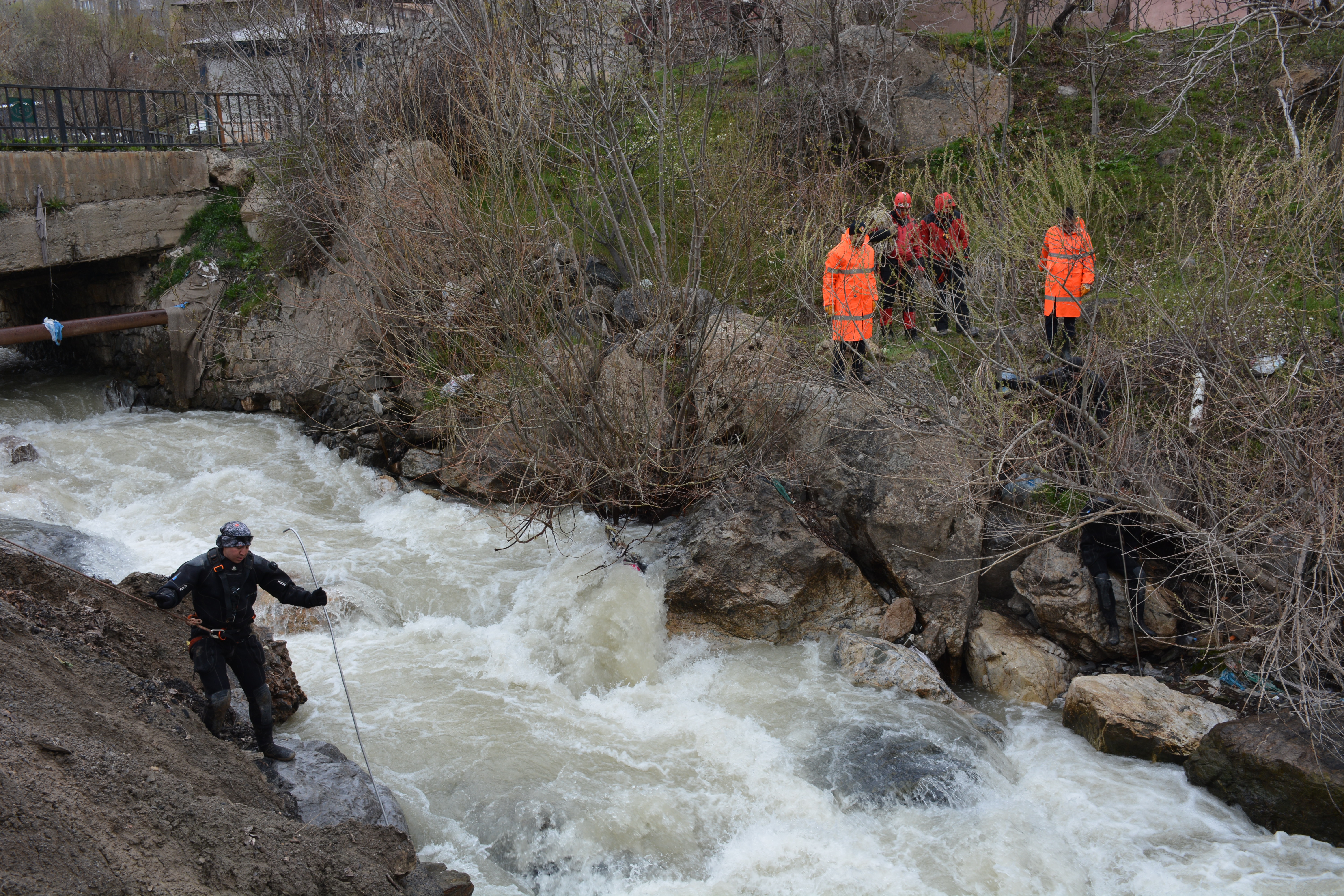 Üç gündür Katramas Deresi ve çevresinde yoğunlaştırılan çalışmalara Van Emniyet Müdürlüğü dalgıç polis ve Siirt AFAD Müdürlüğü su üstü arama ekibi de destek veriyor.