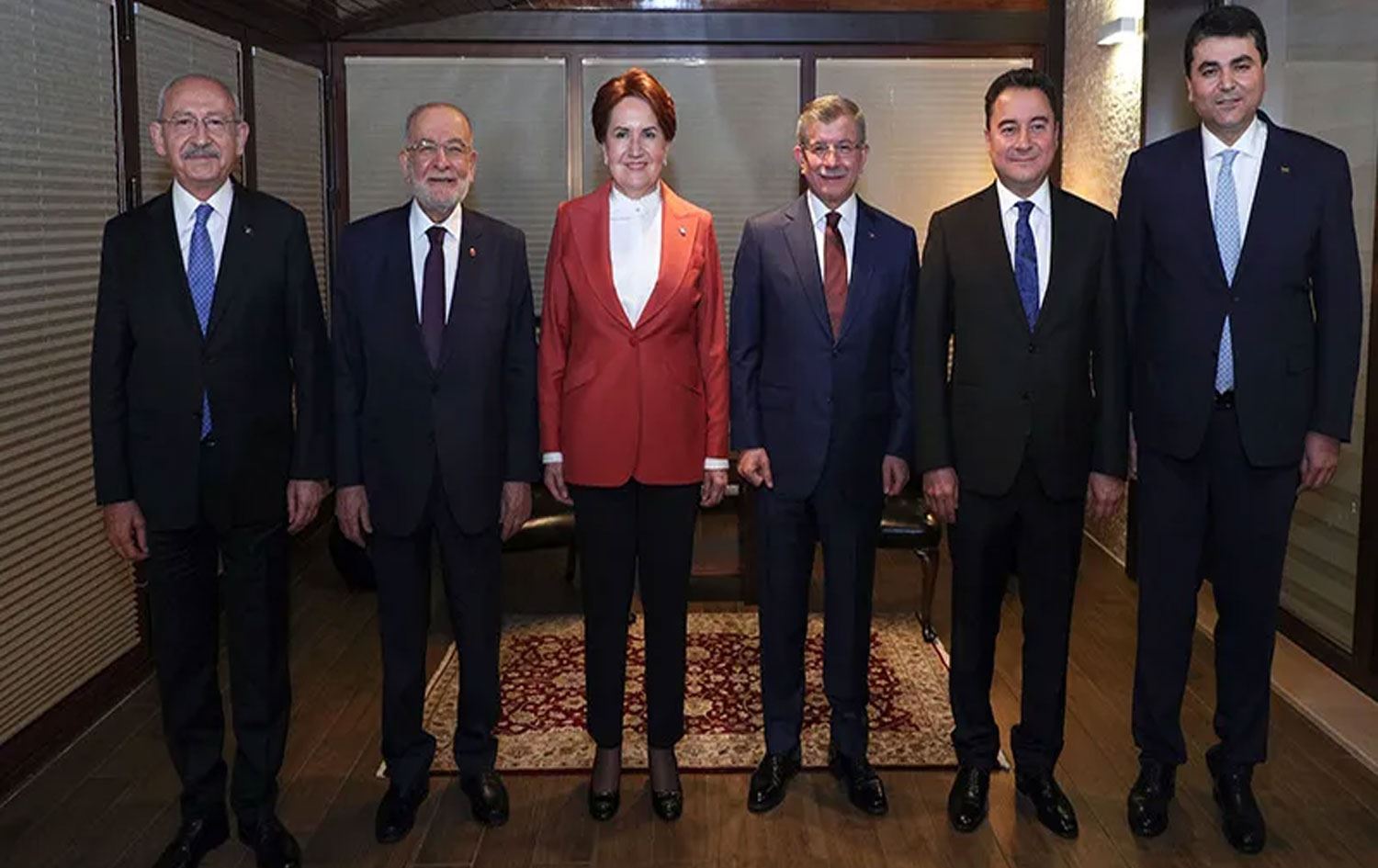 CHP Genel Başkanı Kemal Kılıçdaroğlu'nun ev sahipliğinde parti genel merkezindeki toplantıya İYİ Parti Genel Başkanı Meral Akşener, Demokrat Parti Genel Başkanı Gültekin Uysal, DEVA Partisi Genel Başkanı Ali Babacan, Saadet Partisi Genel Başkanı Temel Karamollaoğlu ve Gelecek Partisi Genel Başkanı Ahmet Davutoğlu katıldı.