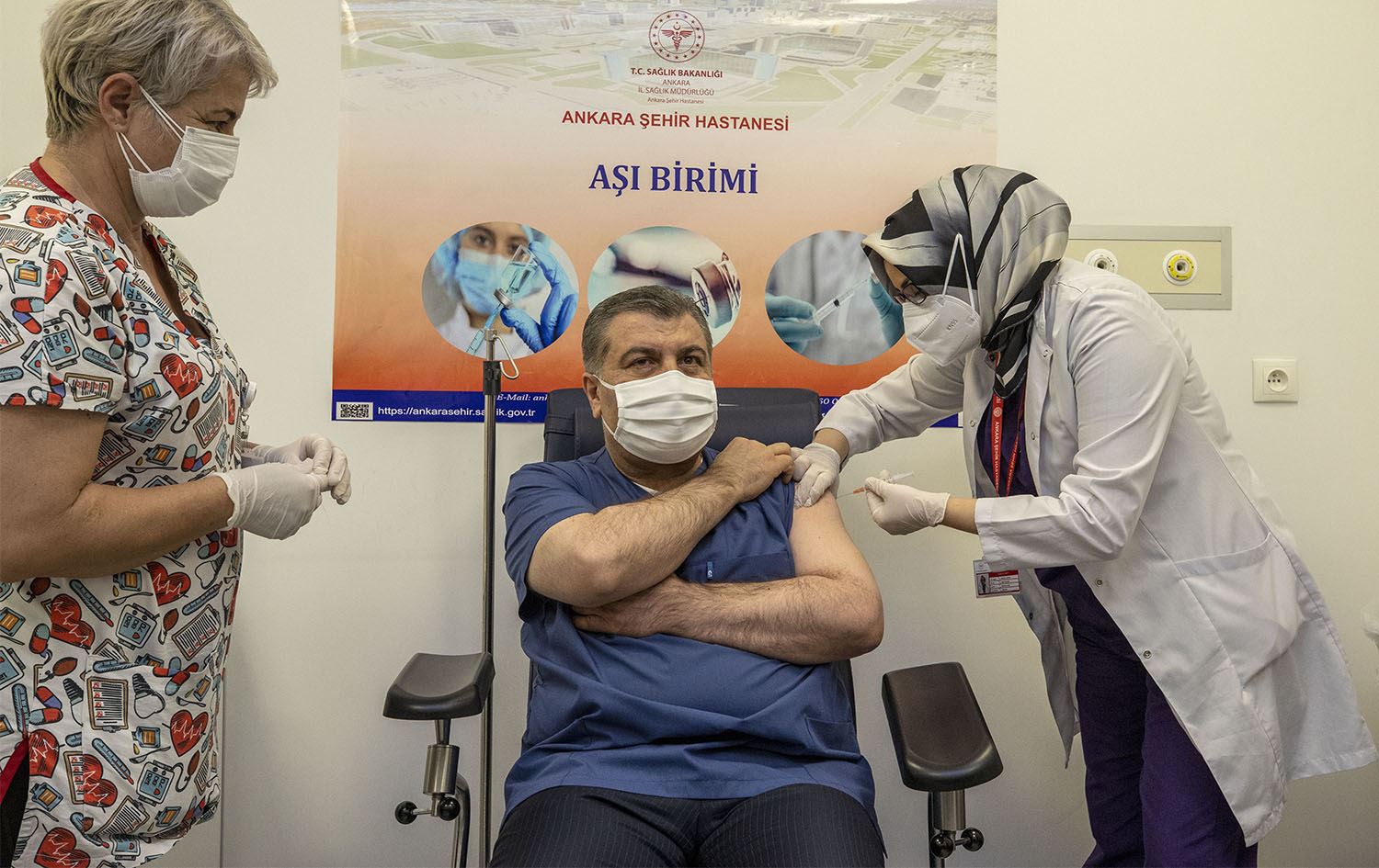 Haber Merkezi - Türkiye İlaç ve Tıbbi Cihaz Kurumu'nun Çinli Sinovac'ın ürettiği CoronaVac aşısına acil kullanım onayı vermesinin ardından, Sağlık Bakanı Fahrettin Koca canlı yayında aşı oldu.