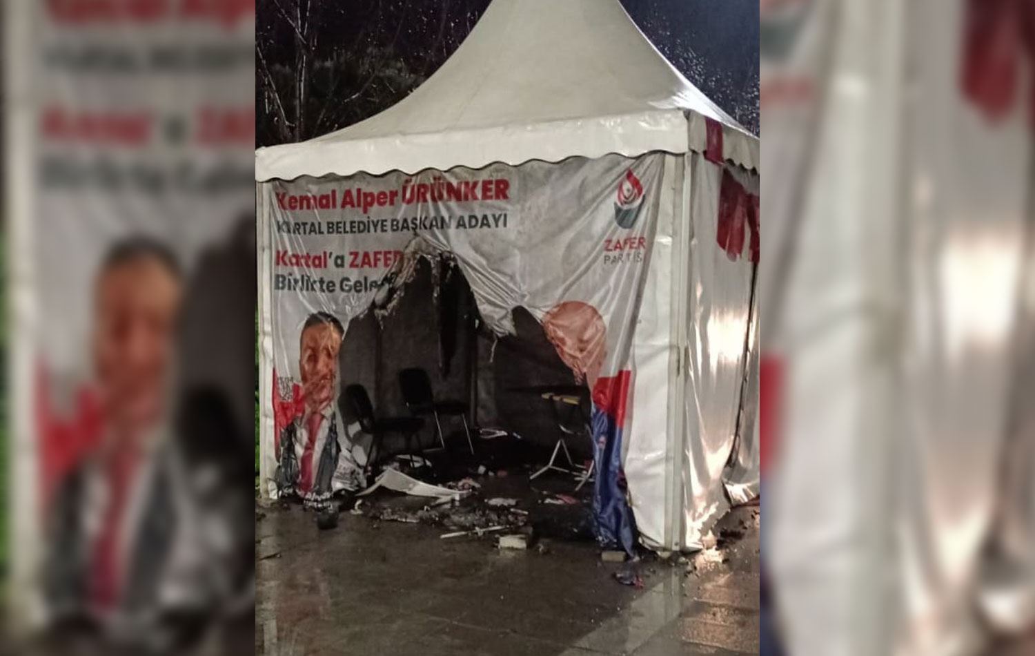 Haber Merkezi - İstanbul Kartal'da bulunan Zafer Partisi'ne ait seçim çadırı kimliği belirsiz kişiler tarafından yakıldı.