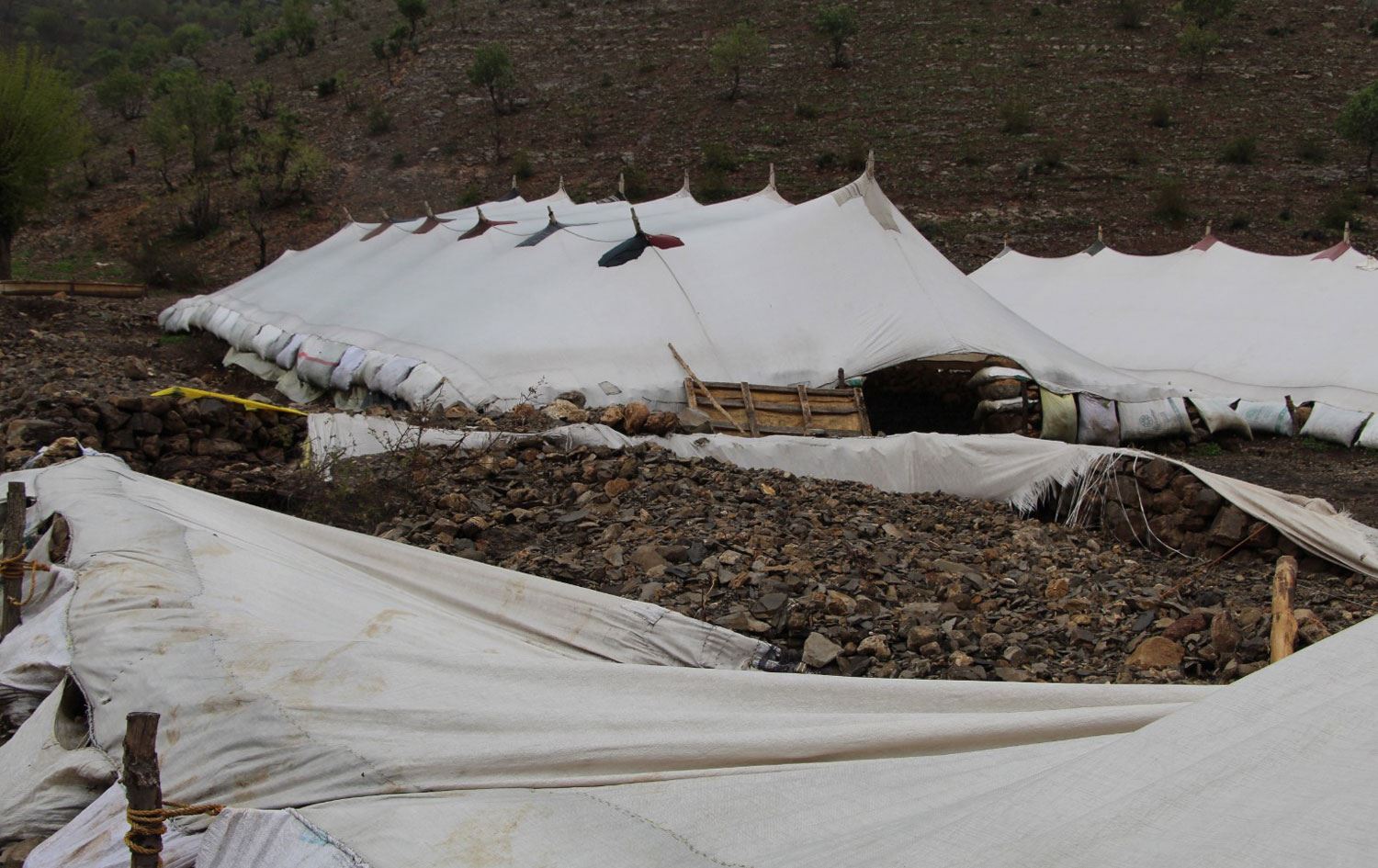 Kent genelinde etkili olan sağanak yağış, Cudi Dağı eteklerinde kışlaklarında çadırlarda yaşayan göçerleri etkiledi.