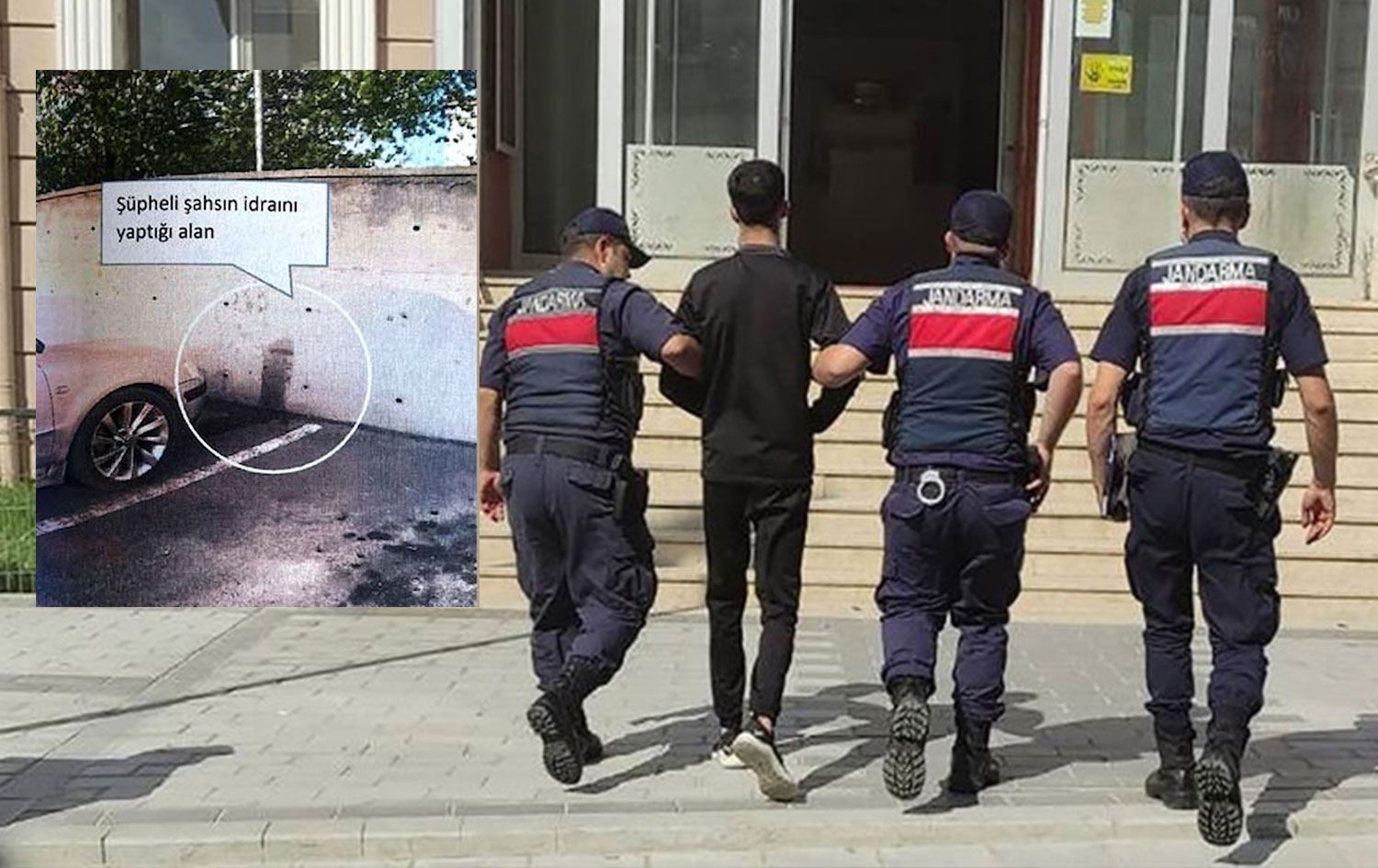 P.K.’nın duvara idrarını yaptığını fark eden nöbetçi asker durumu üstlerine bildirdi. Astsubayın durumu savcılığa bildirmesi sonrasında Jandarma Komutanlığı binasının duvarına işeyen P.K. polis tarafından yakalandı.