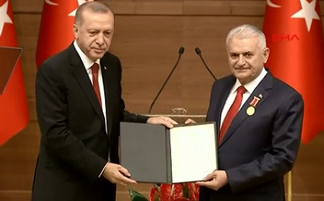 Konuşmanın ardından Erdoğan, Yıldırım'a Devlet Şeref Madalyasını takdim etti.