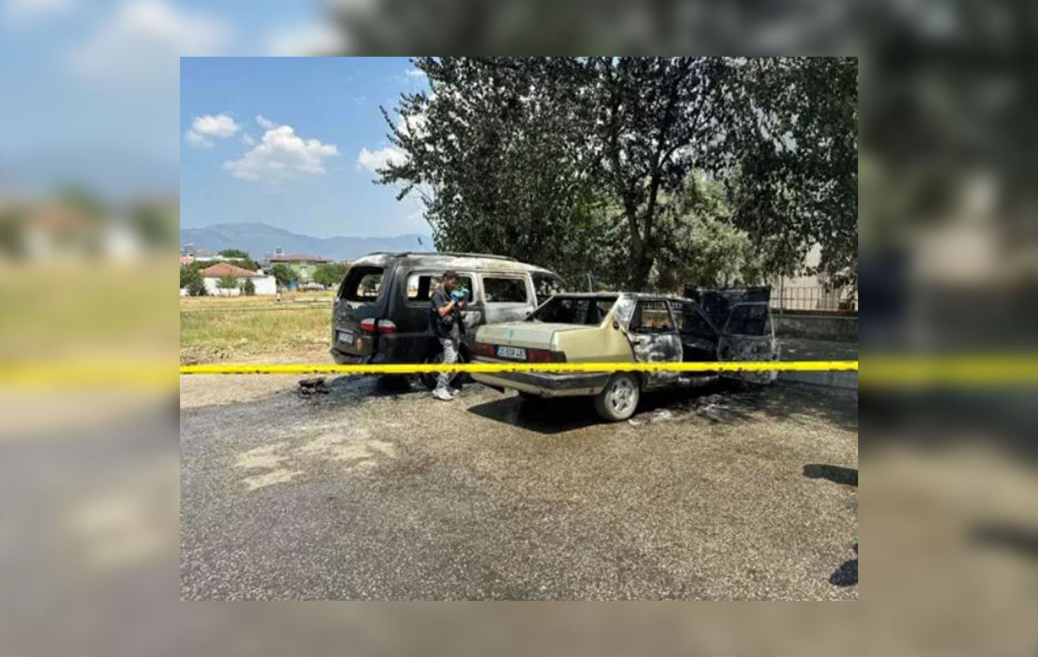Alevler kısa sürede otomobilin ön kısmına sıçradı ve ardından yanında park halindeki 07 K 0679 plakalı minibüse de sıçradı.