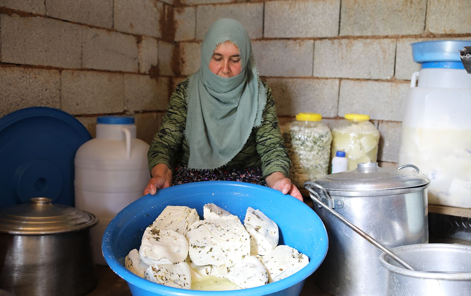 Kadınlar, günde iki kez sağdığı sütü, tereyağı ve bölgede topladıkları kekik ve sirmo otuyla harmanlayarak otlu peynir haline getiriyor.