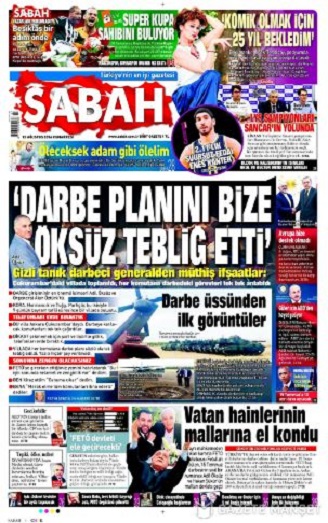 Sabah: DARBE PLANINI BİZE ÖKSÜZ TEBLİĞ ETTİ