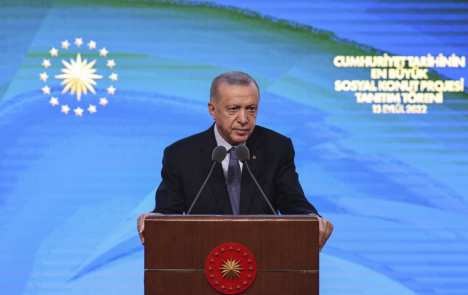 Cumhurbaşkanı Recep Tayyip Erdoğan, Beştepe Millet Kongre ve Kültür Merkezi'nde düzenlenen Cumhuriyet tarihinin en büyük sosyal konut projesinin tanıtım töreninde bir konuşma yaptı.