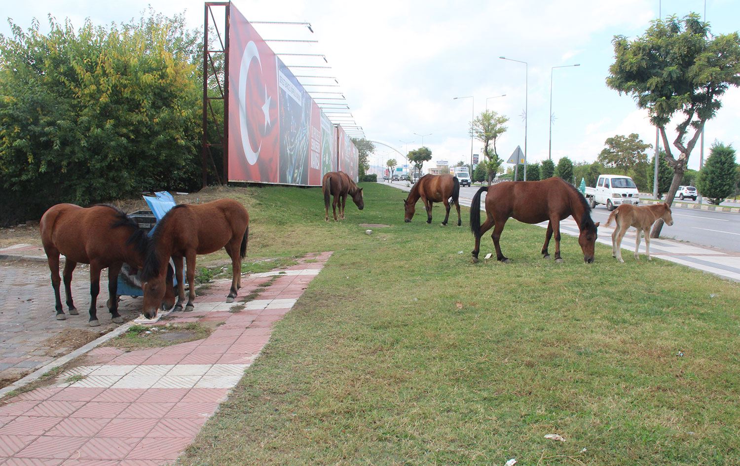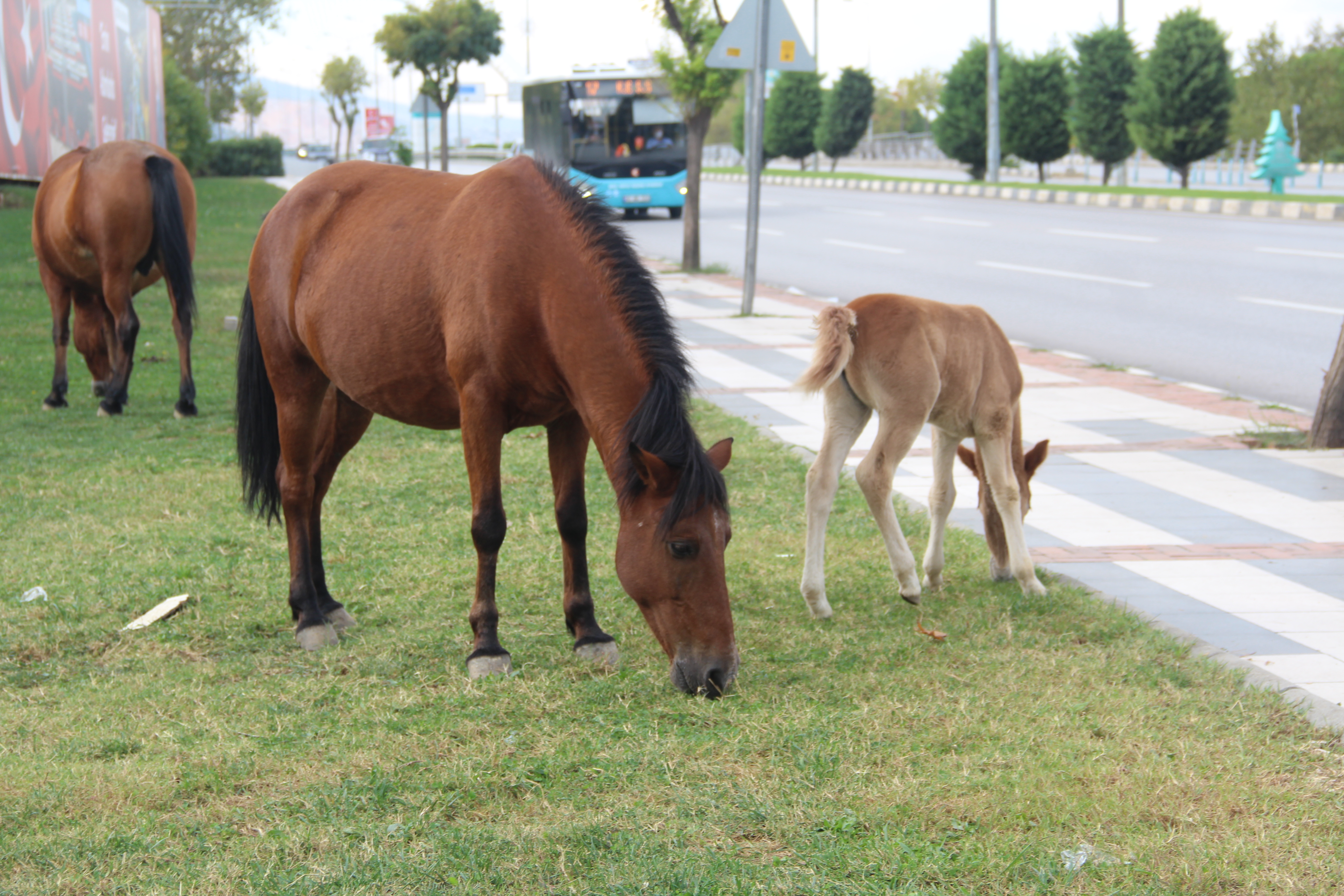 Öte yandan yılkı atlarından birinin boynunda yara olduğu da gözlendi.