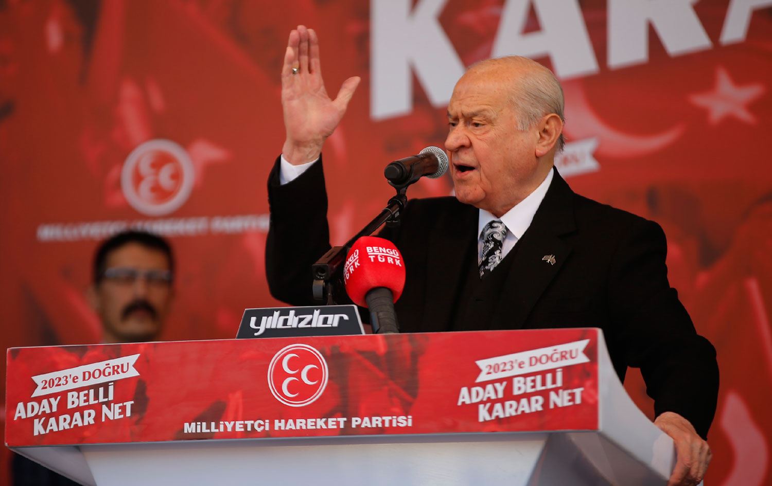 Erbil (Rûdaw) - Elazığ'da, partisinin "Aday Belli, Karar Net" mitinginde konuşan MHP lideri Devlet Bahçeli, “Anayasa Mahkemesi tarafından HDP'nin kapatılması da mutlak mecburiyettir” dedi.