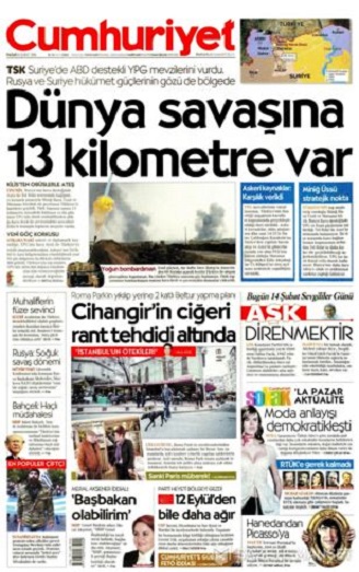Cumhuriyet: DÜNYA SAVAŞINA 13 KİLOMETRE VAR