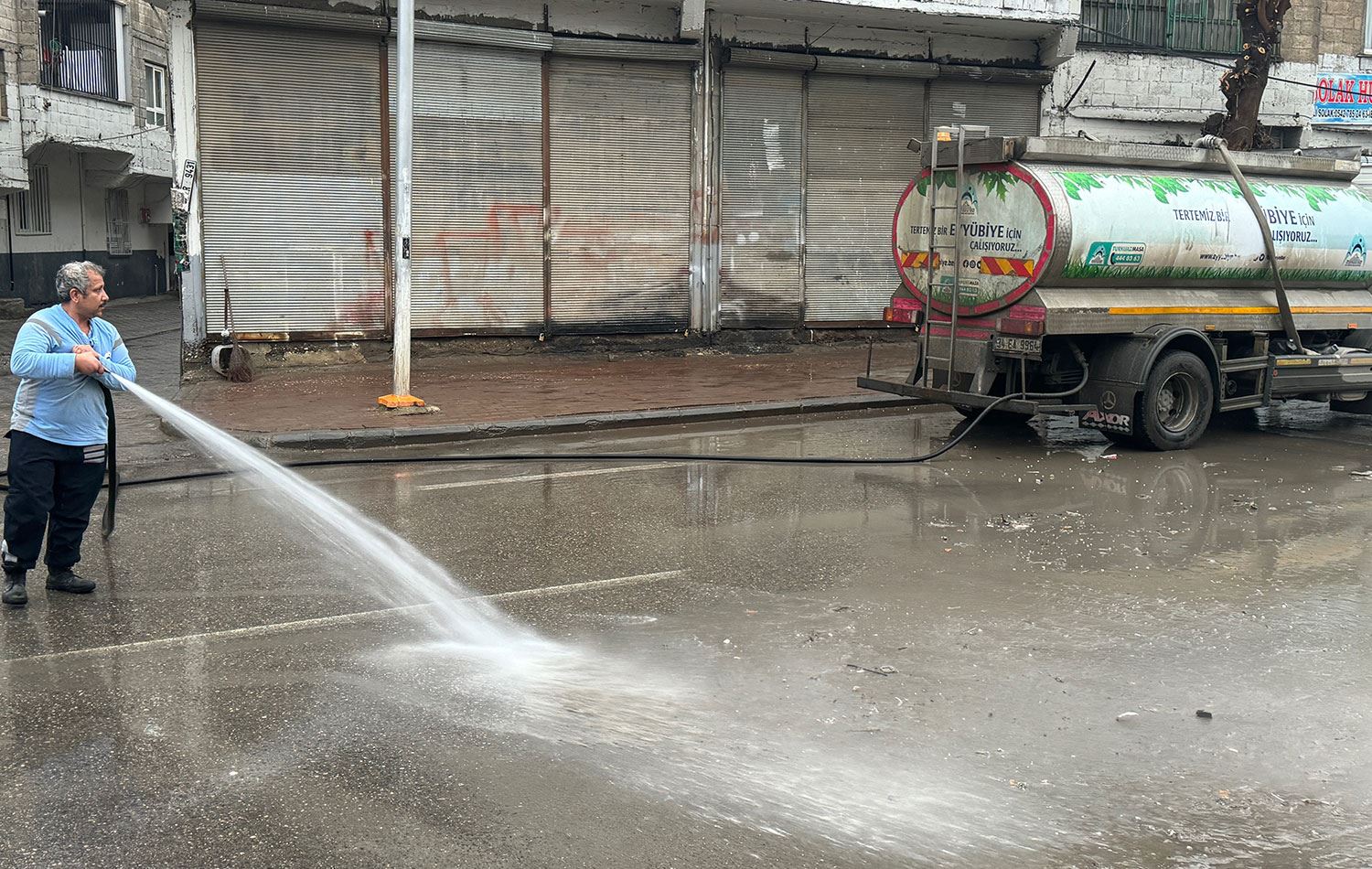 Urfa'da sağanak, yer yer su baskınlarına neden oldu. İhbar üzerine bölgeye sevk edilen ekipler, suyun tahliye edilmesi için çalışmalar yaptı. / AA