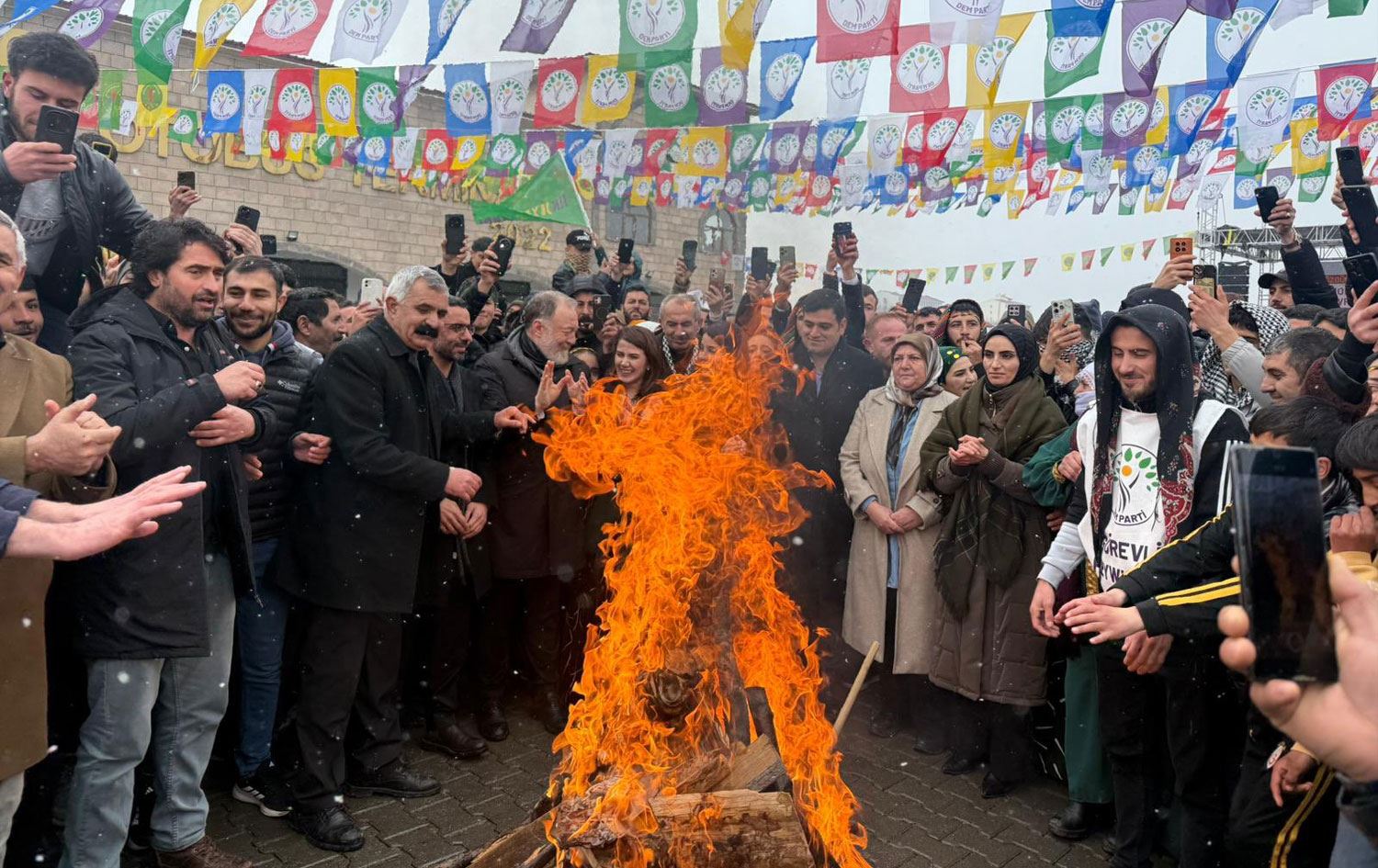 Newroz’a DEM Parti milletvekilleri Sümeyye Boz, Sezai Temelli ve çok sayı da kişi katıldı. Newroz’a katılan kadınlar ve gençler, kar yağışına rağmen çalınan şarkılar eşliğinde halaylar çekti.