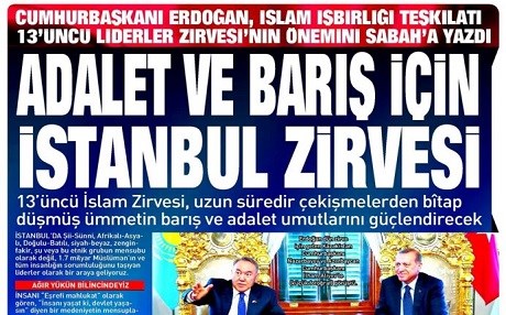 İstanbul'un ev sahipliğinde 13'üncü Liderler Zirvesi'ni icra edeceğimiz İslam İşbirliği Teşkilatı, kuruluşundan bu yana geçen yaklaşık yarım asırlık sürede, üye ülkelerin gayretleriyle, İslam dünyasının meselelerinin tartışıldığı, istişare edildiği ve önemli kararların alındığı en büyük platform haline gelmiştir. Teşkilat'ın teşekkülüne kaynaklık eden Filistin ve Kudüs davası, İstanbul Zirvesi'nin de en öncelikli gündem maddeleri arasında yer almaktadır. Suriye ve Irak başta olmak üzere, bölgemizdeki pek çok yerde yaşanan sorunların da, Teşkilat'ın asli görev alanına girdiğine inanıyoruz.