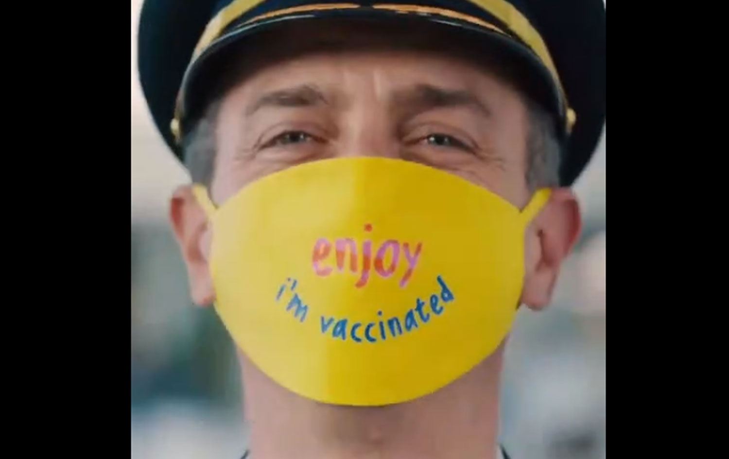 “GoTurkiye” adlı hesaptan paylaşılan videoda, “Temizlenmiş tatil köyleri ve aşılanmış personel! Biz buna Turizm için Çifte Güvenlik diyoruz! Gelin ve #TurkishRiviera'nın tadını gönül rahatlığıyla çıkarın" ifadeleri yer alıyor. Videoda, turistleri karşılayan otel görevlilerinin maskelerinde "Enjoy, I'm vaccinated (Keyfini çıkar, aşılıyım)” ifadelerinin yazılı olduğu görülüyor.