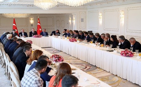 Erdoğan, gazete ve televizyon kanallarının genel yayın yönetmenleri, bazı yazar ve akademisyenlerle Vahdettin Köşkü'nde bir araya geldi.