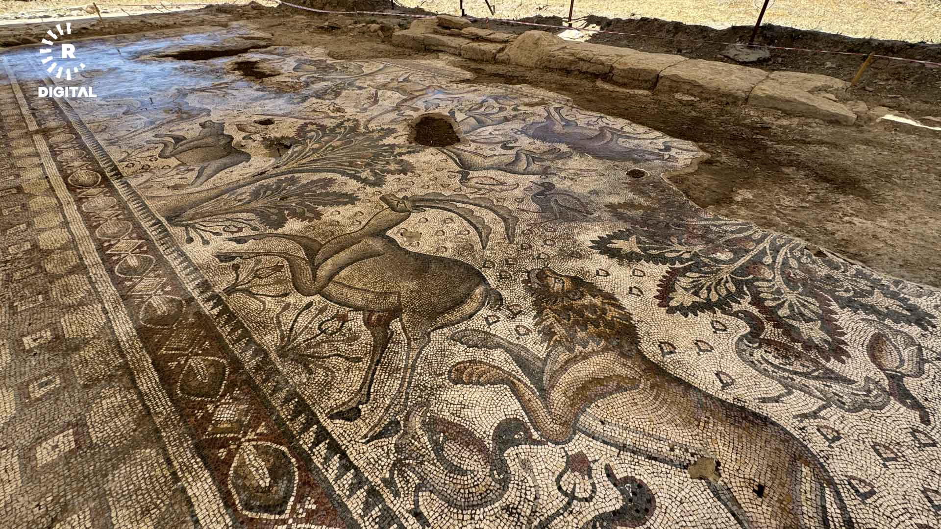 Bu kapsamda, daha önce bulunan, renkli ve desenli yapıda hayvan figürlerinin resmedildiği tarihi mozaiğin 70 metre güneyindeki bir başka tarlada yeni bir yapı olduğu tespit edildi.
