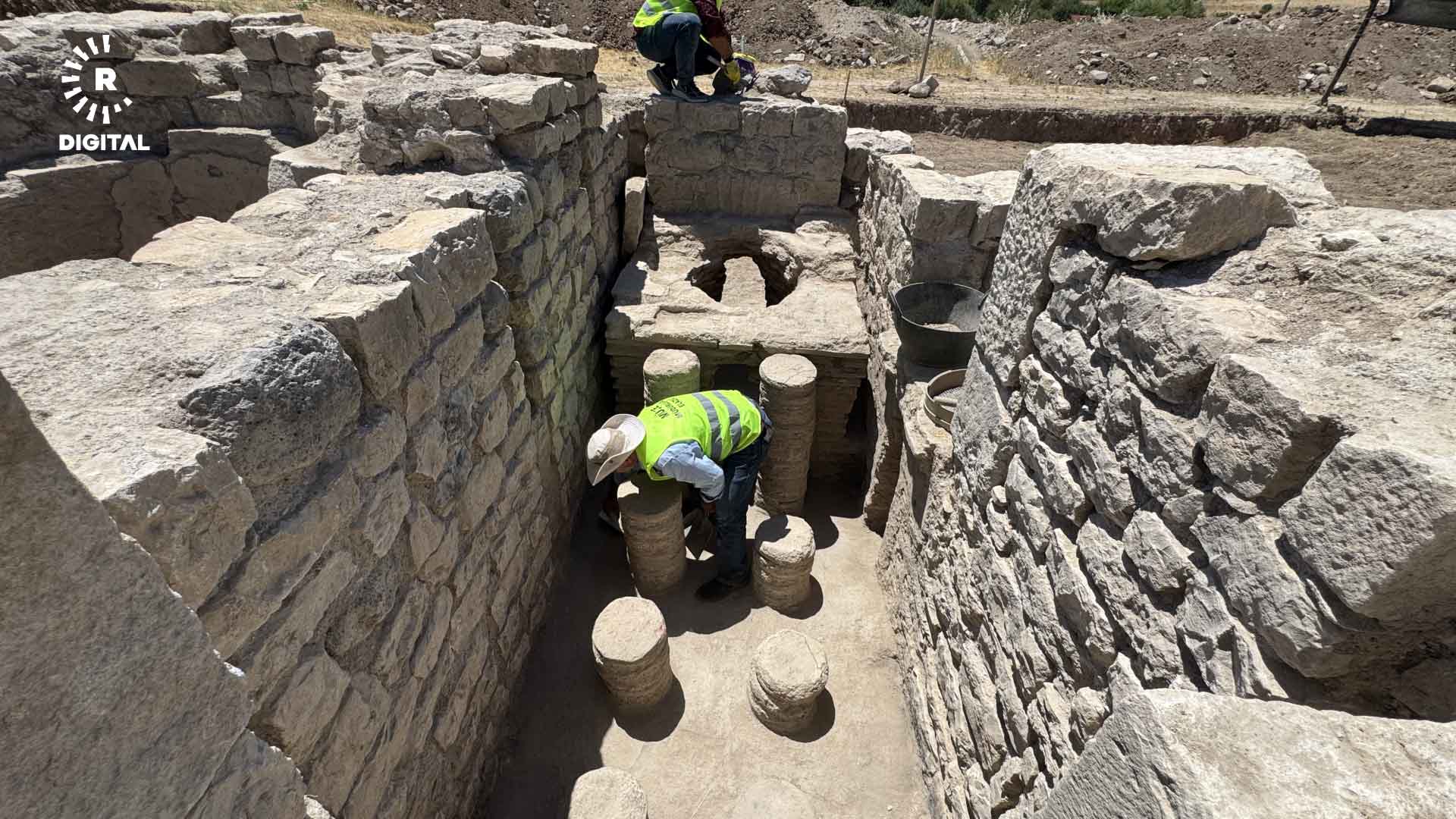 Elazığ'da yer altı görüntüleme radarıyla bir tarlada tespit edilen yapının, yürütülen arkeolojik kazı çalışmaları sonucu o dönemin üst düzey bir sınıfına ait olduğu değerlendirilen Roma hamamı olduğu tespit edildi.
