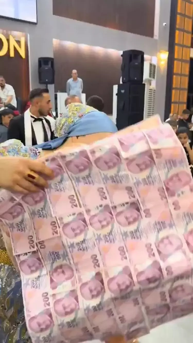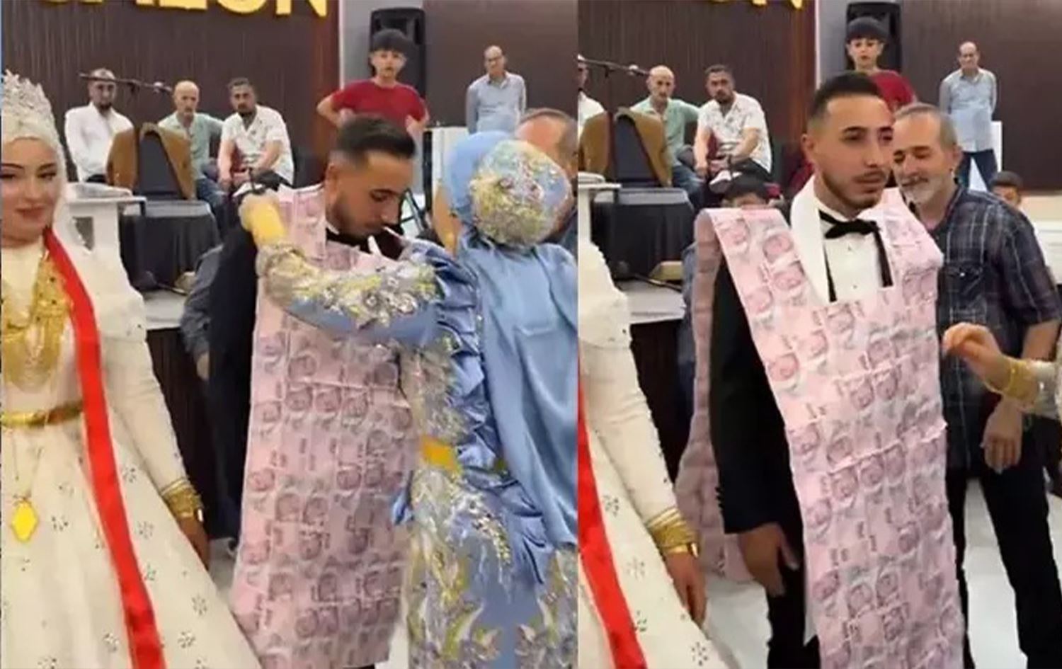 Haber Merkezi - Mardin’in Kızıltepe ilçesinde yapılan bir düğünde, damada 200 TL’lik banknotlarla hazırlanmış yelek giydirildi.
