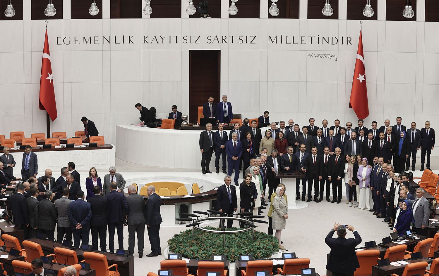 Yeni Basın Kanunu Teklifi, TBMM Genel Kurulunda kabul edilerek yasalaştı. AK Parti grubu milletvekilleri, görüşmeler sonunda hatıra fotoğrafı çektirdi. / AA