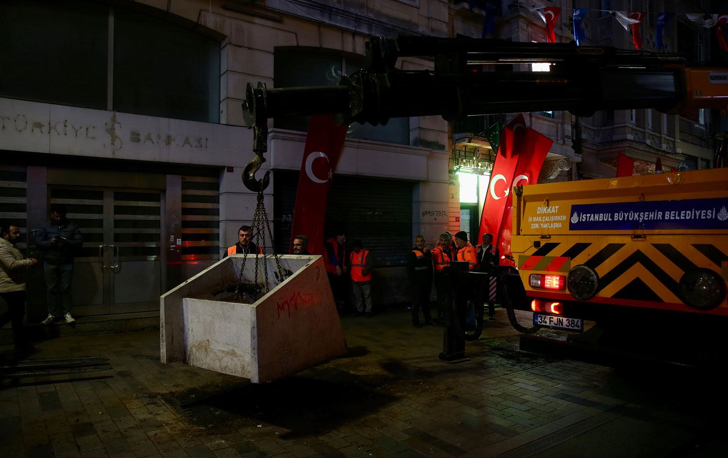 Haber Merkezi -Dün akşam düzenlenen bombalı saldırının ardından İstiklal Caddesi’ndeki beton saksılar kaldırılmaya başlandı.