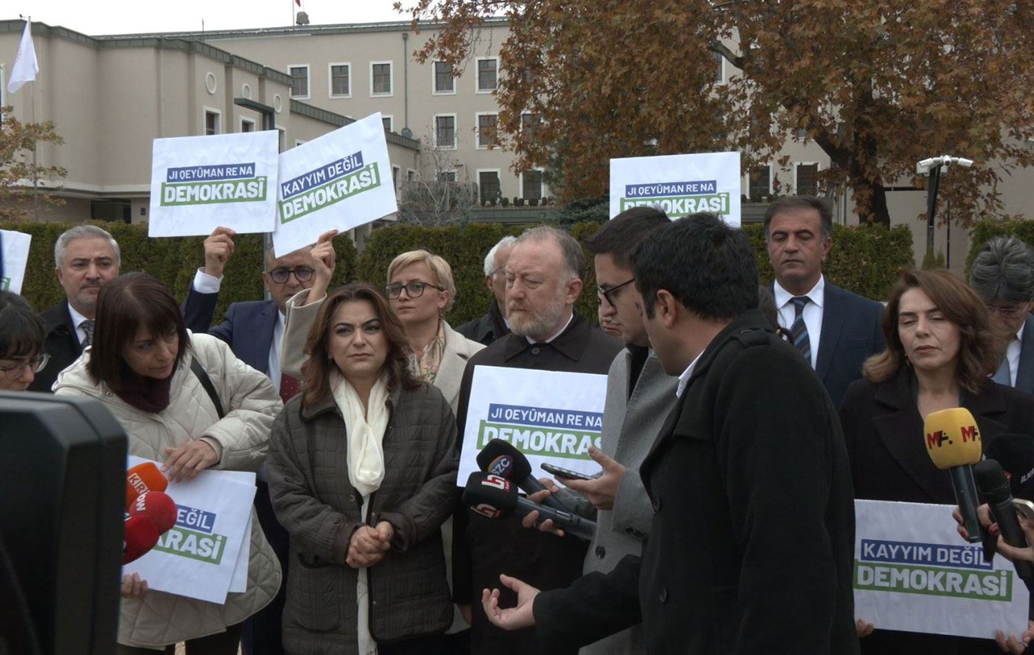 Koçyiğit'in ardından söz alan DEM Parti Grup Başkanvekili Sezai Temelli ise atanmış ve seçilmişlerin karşı karşıya olduğu bir sürecin yaşandığını belirterek, “Eğer hukuk devletinin hakim olduğu bir ülkede yaşamak istiyorsanız. Eğer barışınızı arıyorsanız, mutlaka kayyıma karşı çıkmalısınız. Bugün hukuk devletini dinamitleyen tecrit anlayışı 25 yıldır bu ülkede her yeri çürüttü… Biz buradan bir kez daha demokrasiden yana olanları kadınları, emekçileri, bu halkın mağdur edilmiş sömürülmüş tüm insanlarını bu mücadeleye yan yana olmaya davet ediyoruz” diye konuştu.