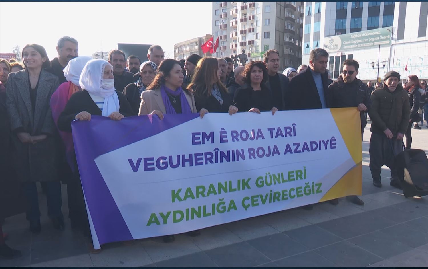 Diyarbakır’da Öcalan'ın serbest bırakılması istendi, kayyım uygulaması protesto edildi. / Foto: Rûdaw