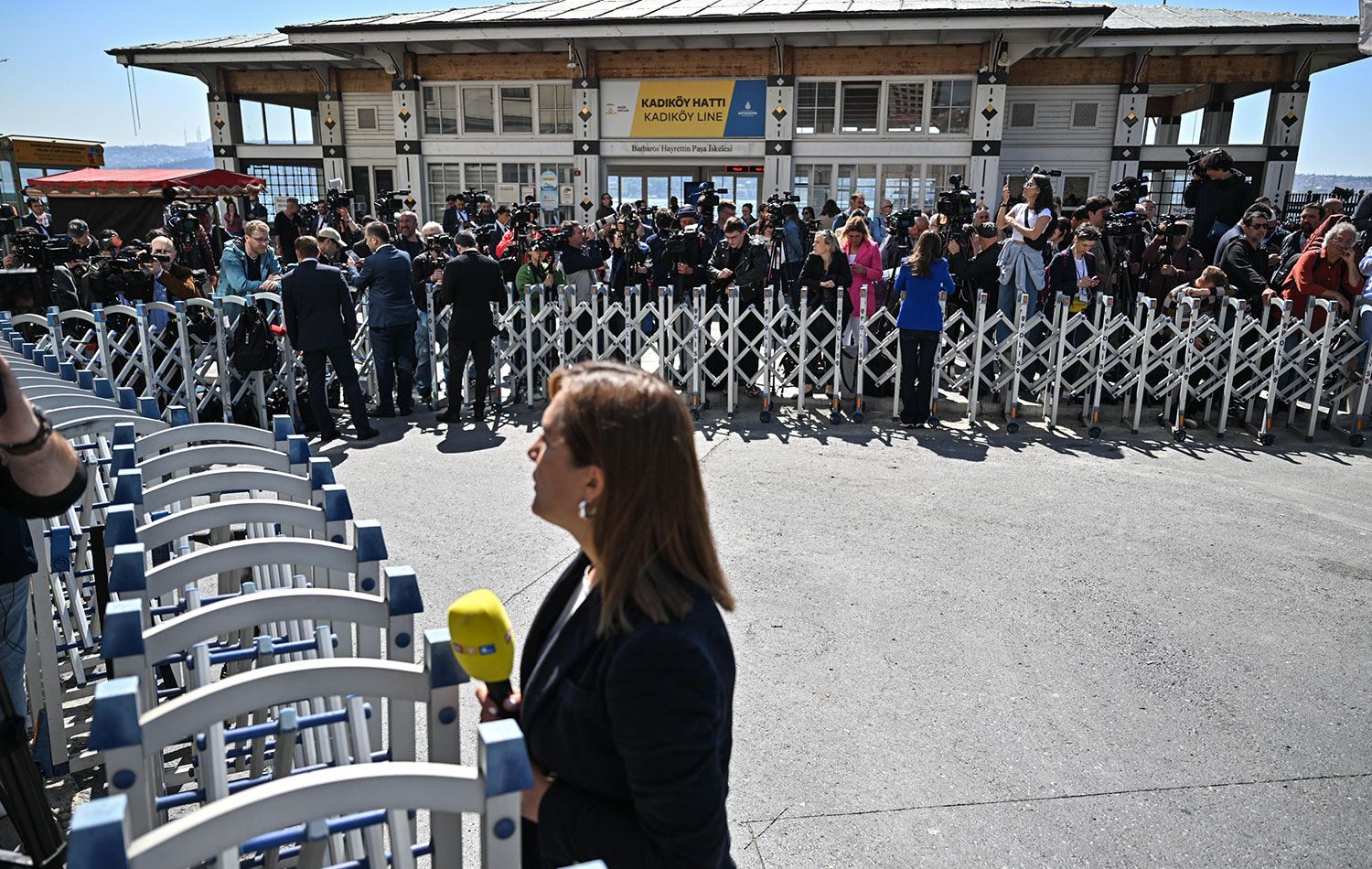İstanbul Dolmabahçe Ofis'te yapılacak olan Rusya ve Ukrayna heyetleri arasındaki müzakerelere basın mensupları ilgi gösterdi. / AA