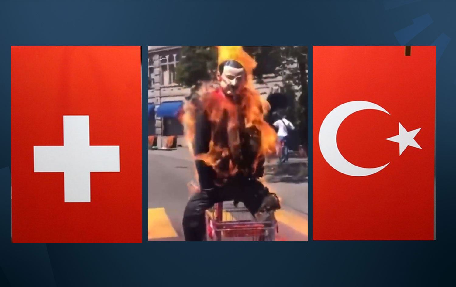"Zürih Devrimci Grev Kolektifi" adlı grup tarafından Zürih'teki UBS Bankası önünde Erdoğan'a benzetilen kukla ve Türk bayrağı yakılmıştı.