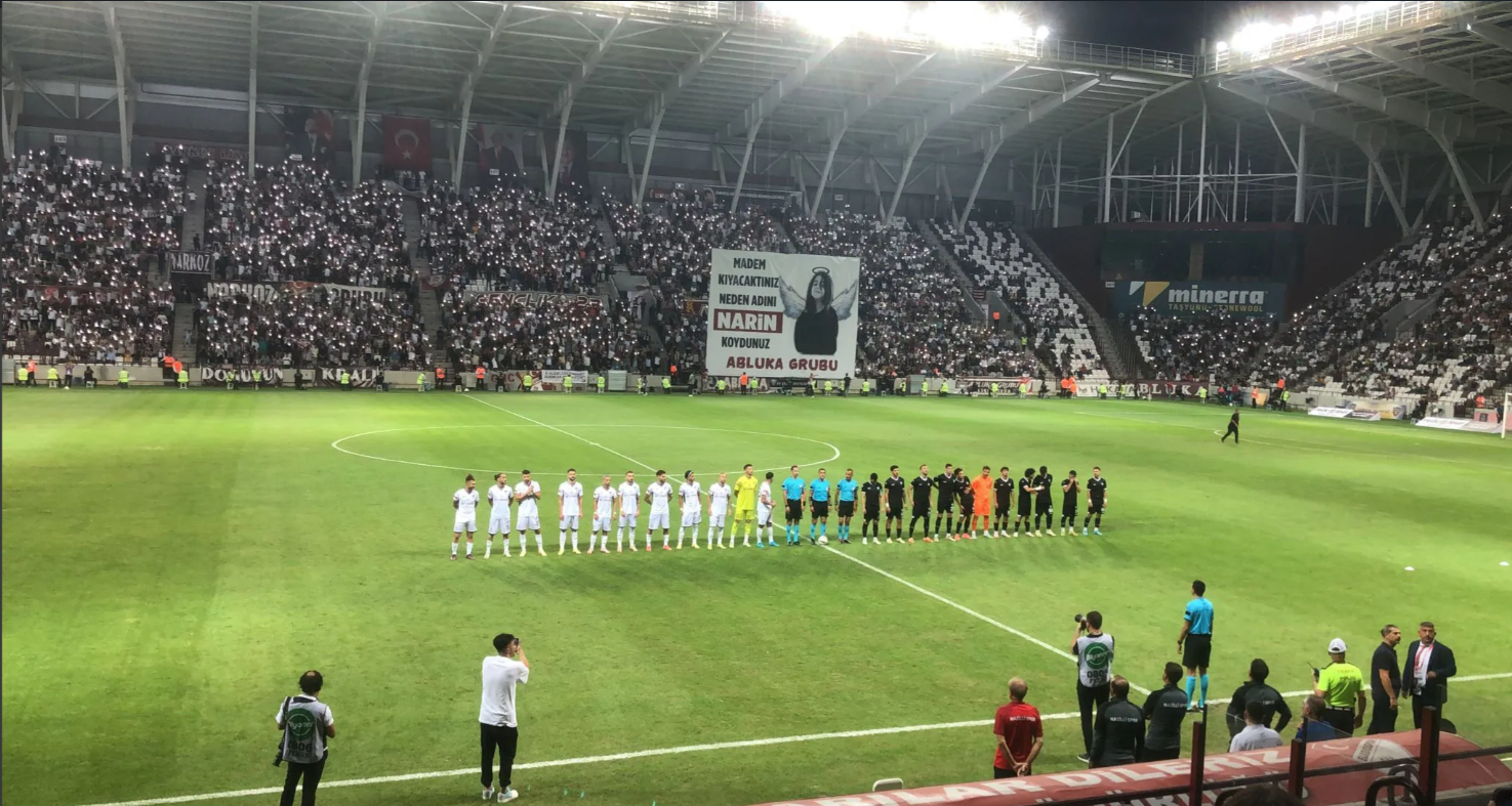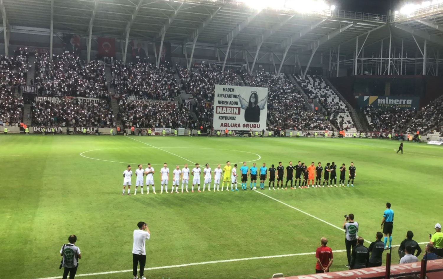 Abluka Grubu, Elazığ Stadyumu'ndaki karşılaşmada Diyarbakır merkez Bağlar ilçesinin Tavşantepe Mahallesi'nde 21 Ağustos'ta kaybolan ve 8 Eylül'de Eğertutmaz Deresi'nde cansız bedenine ulaşılan Narin Güran'ın fotoğrafının yer aldığı pankart açtı.