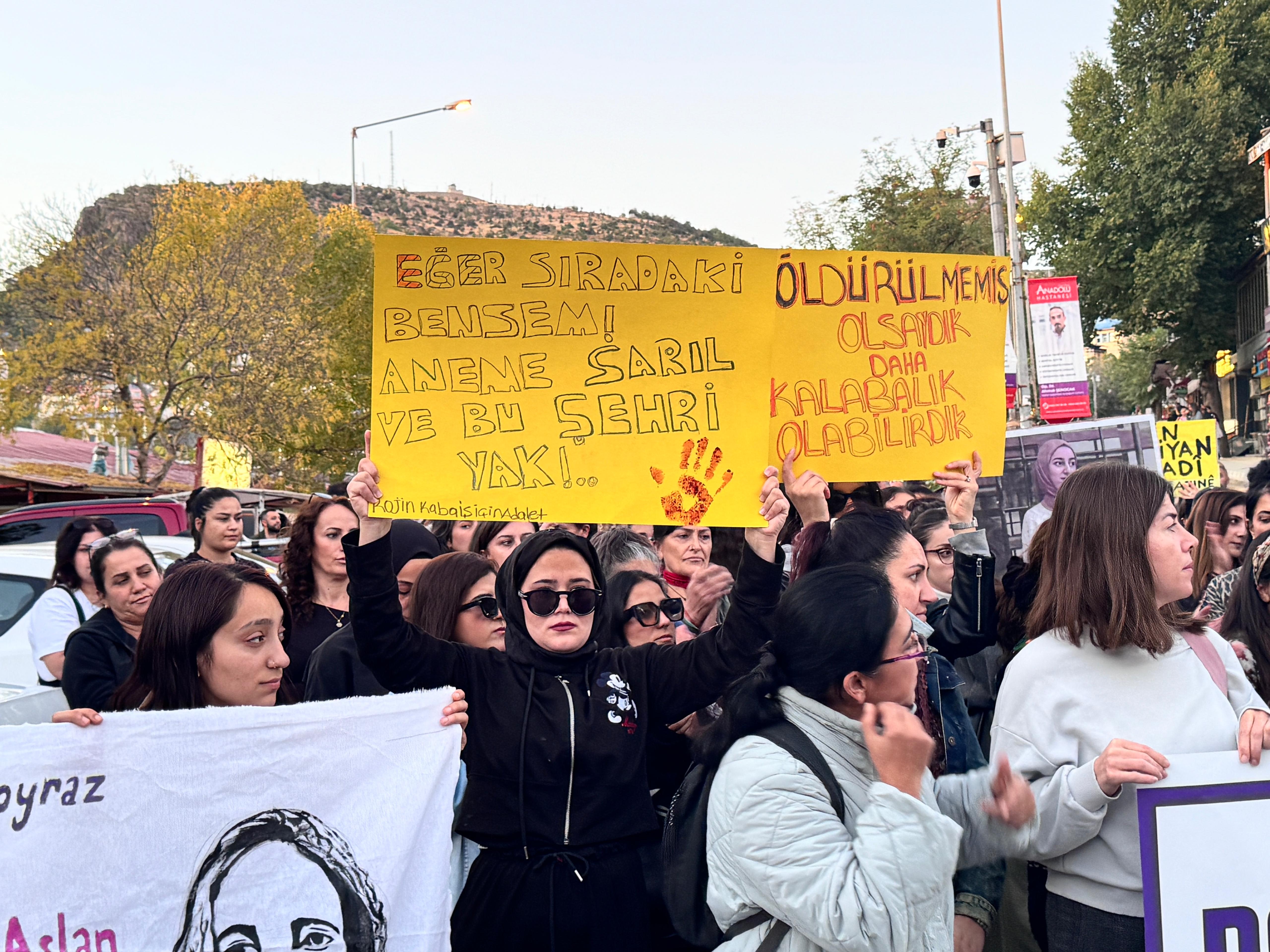 "Kadınlar evlerinde, kaldıkları yurtların önünde, iş yerlerinde, sokakta öldürülüyor. Katiller cezasızlıkla ödüllendiriliyor. Ailelerinin bin bir emekle yetiştirdiği, gözlerinden sakındığı genç kadınların erkek şiddetine ve faili meçhul cinayetlere kurban gitmesine isyan ediyoruz. Ataerkil devlet anlayışının ve kurumlarının katilleri koruyup kollamasına isyan ediyoruz. Genç bir kadının göl kenarında tek başına oturup müzik dinlemesini bile çok gören bu zalimliğe isyan ediyoruz!"