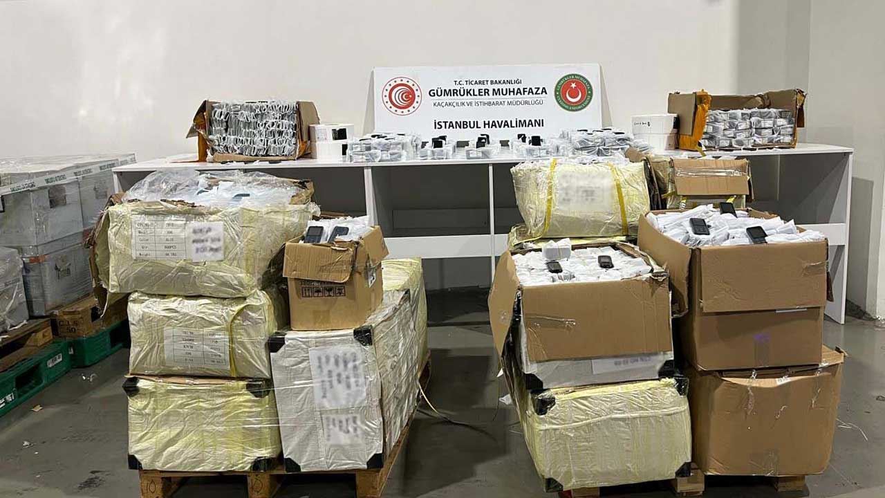 İstanbul Havalimanı'nda gümrük ekipleri tarafından yapılan operasyonda Türkiye'ye kaçak yollarla sokulmaya çalışılan 15 bin 485 adet cep telefonu yakalandı.
