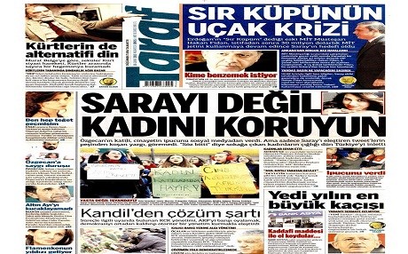 Taraf gazetesi ise, “Kandil’den çözüm şartı” başlığıyla verdiği haberde, “Süreçle ilgili uyarıda bulunan KCK yönetimi, AKP’yi barışı oyalamak, demokrasiyi ortadan kaldırıp otoriter bir yönetim kurmakla eleştirdi” denildi.