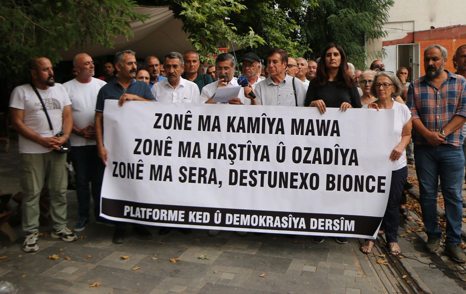 Açıklamaya yerine kayyım atanan Dersim Belediye Eş Başkanları Cevdet Konak ve Birsen Orhan, Demokratik Alevi Dernekleri Eş Genel Başkanı Kadriye Doğan, Dersim’deki siyasi parti ve demokratik kitle örgütlerinin temsilcileri katıldı.