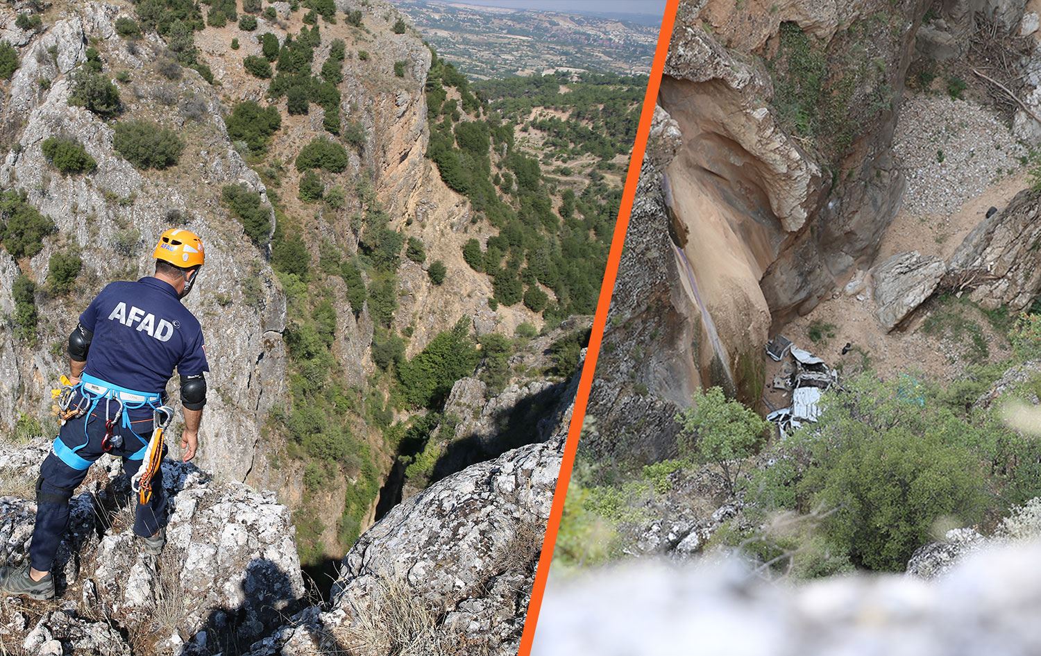 Bölgenin sarp ve kayalık olması nedeniyle ekipler otomobile ulaşmakta zorluk çekti.