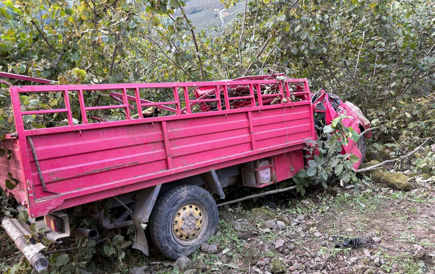 Ali Alim idaresindeki plakası öğrenilemeyen kamyonet, Oyraca köyü yolunda kontrolden çıkarak fındık bahçesine devrildi.