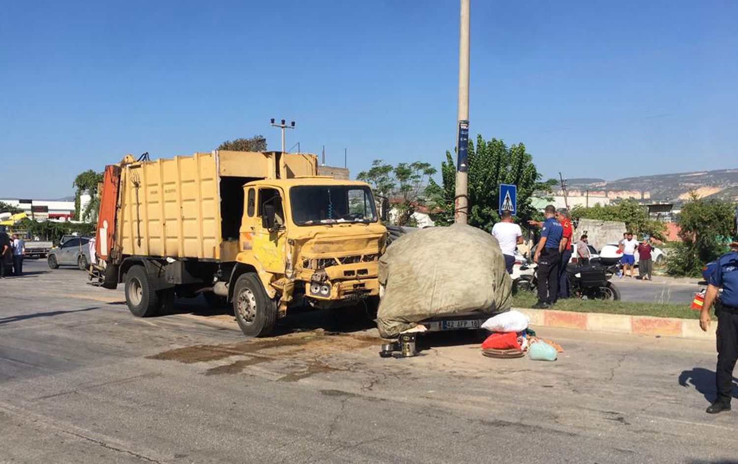 Mersin- Antalya D-400 kara yolu Erdemli Orman İşletme Müdürlüğü önündeki kavşakta, Erdemli yönüne giden İbrahim Doğan yönetimindeki çöp kamyonu, otomobil harici U dönüşü yasak olan kavşaktan dönüş yapan Cahit Çağlayan yönetimindeki plakalı kamyonete çarptı.