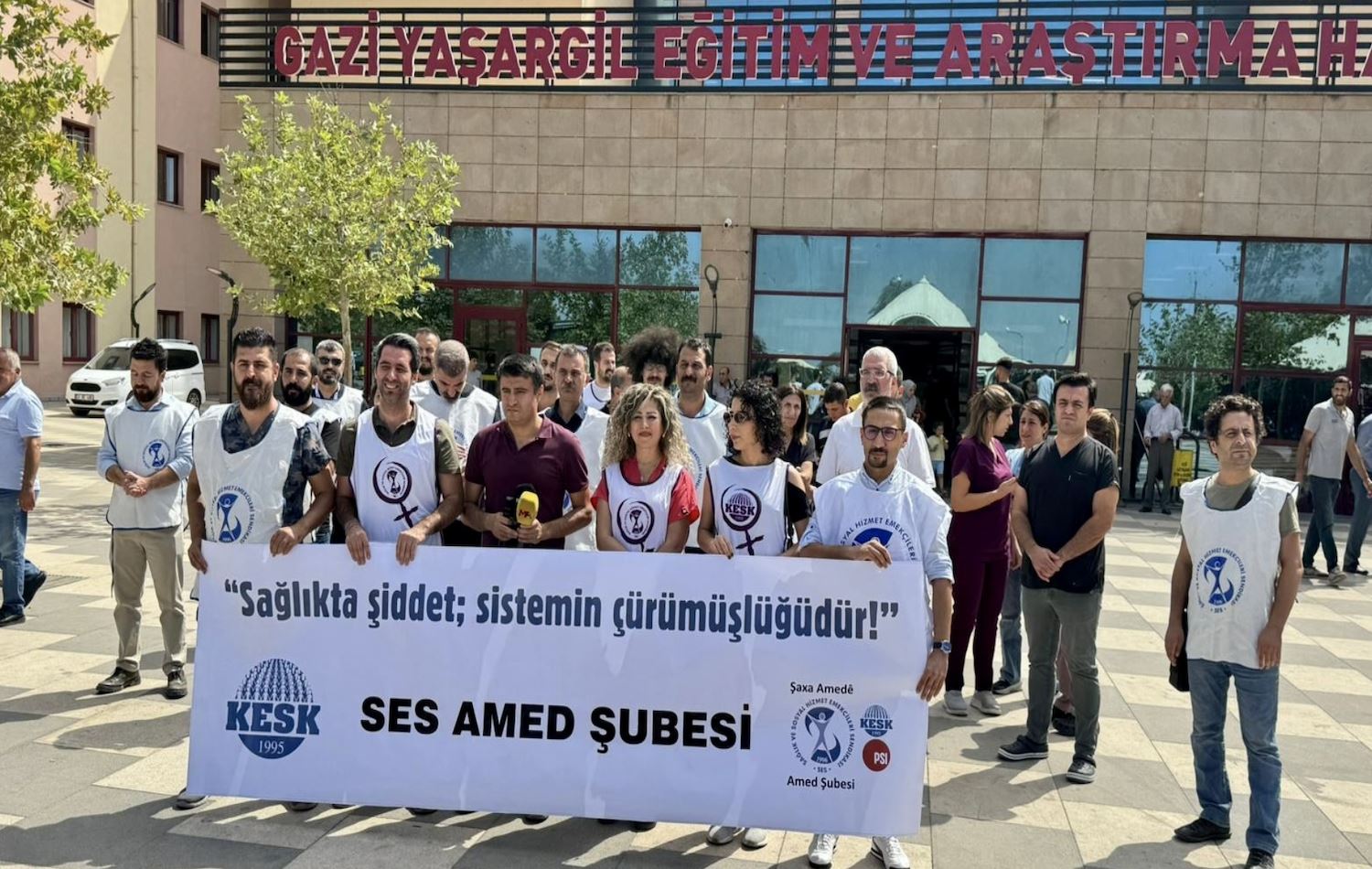 Haber Merkezi - SES Diyarbakır Şubesi üyeleri, hasta yakınlarının MR bölümünde görev yapan dördü kadın beş sağlık çalışanına saldırmasını, hastane önünde düzenledikleri basın açıklamasıyla kınadı.