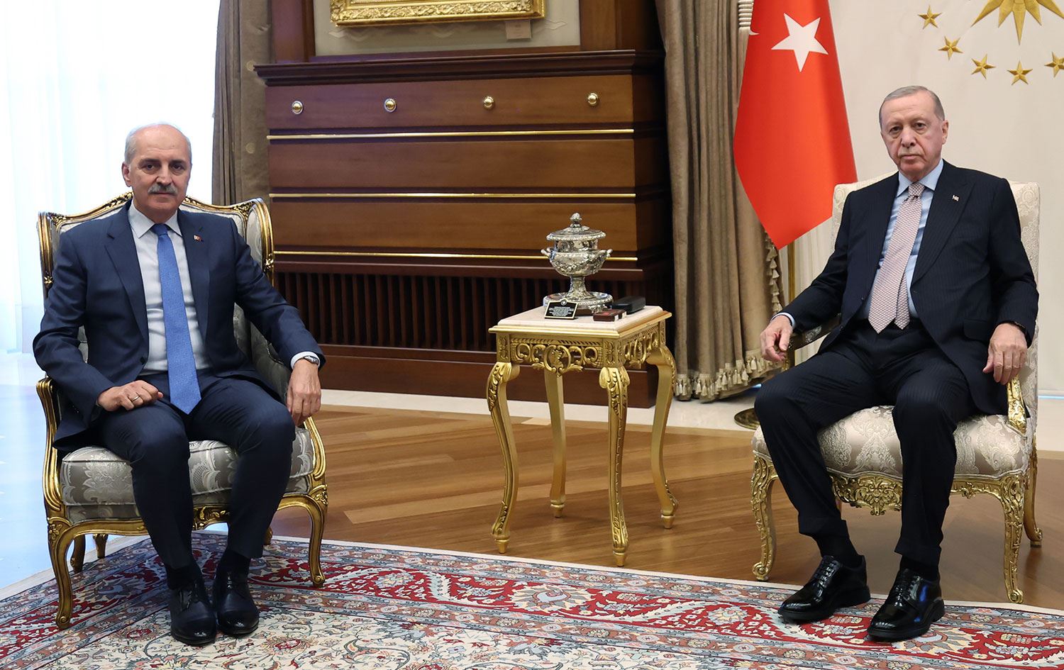 Haber Merkezi – Türkiye Cumhurbaşkanı Recep Tayyip Erdoğan, Türkiye Büyük Millet Meclisi (TBMM) Başkanı Numan Kurtulmuş'u kabul etti.