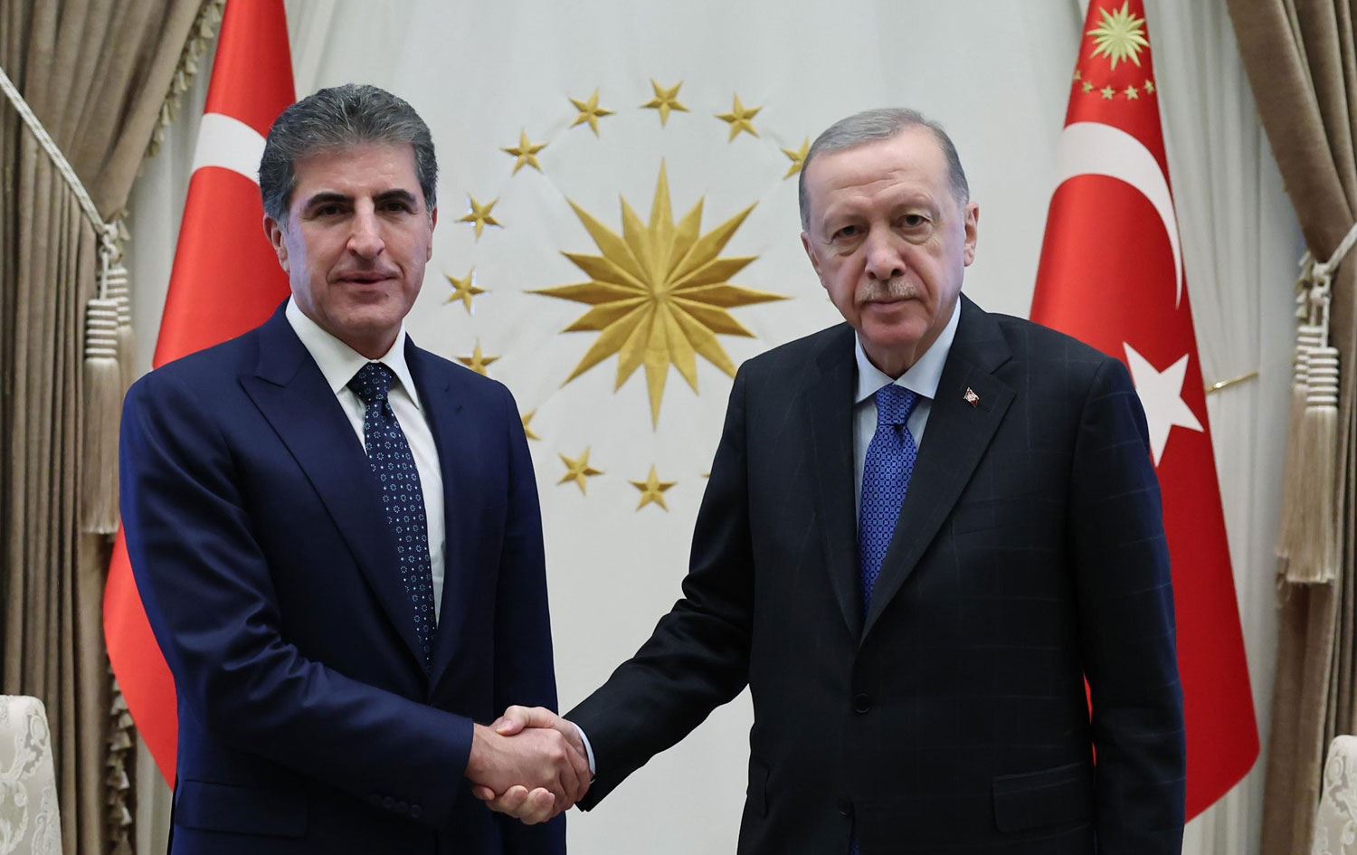 Türkiye Cumhurbaşkanı Recep Tayyip Erdoğan ile Başkan Neçirvan Barzani Ankara’daki Cumhurbaşkanlığı Külliyesi’nde görüştü.